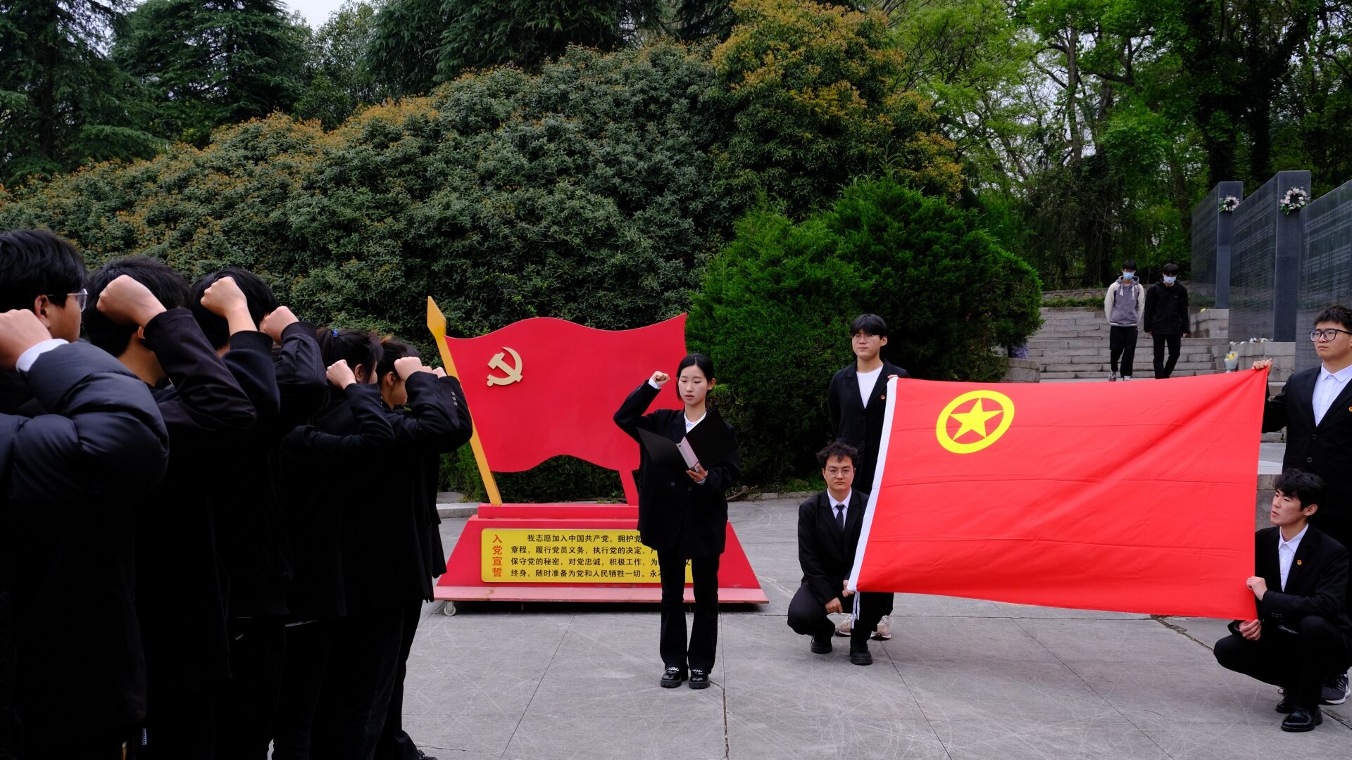 讲解员带领全体成员身临其境地重温了那段跌宕起伏又振奋人心的历史,深入了解了烈士们在战斗中英勇牺牲的光辉事迹,让大家真切体会到革命先烈们不屈不挠、不怕牺牲、勇往直前的爱国主义精神。在烈士纪念碑前,同学们整顿仪容,庄严肃穆,向革命烈士鞠躬致哀。随后,同学们集体重温入团誓词,在庄严的仪式教育中传承初心使命,赓续红色血脉。
