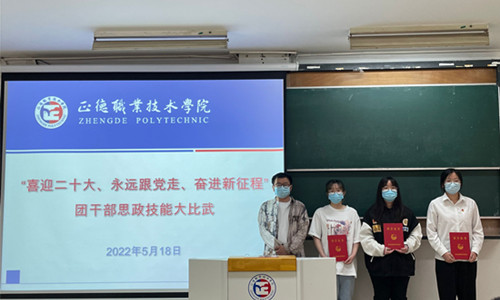 5月18日,天博体育 团委开展 “喜迎二十大、永远跟党走、奋进新征程”团干部思政技能大比武基层团支部书记专项赛校内赛,经过各系初赛选拔的13名选手参加比赛,团委书记黄晓帆和各系团总支书记担任评委。