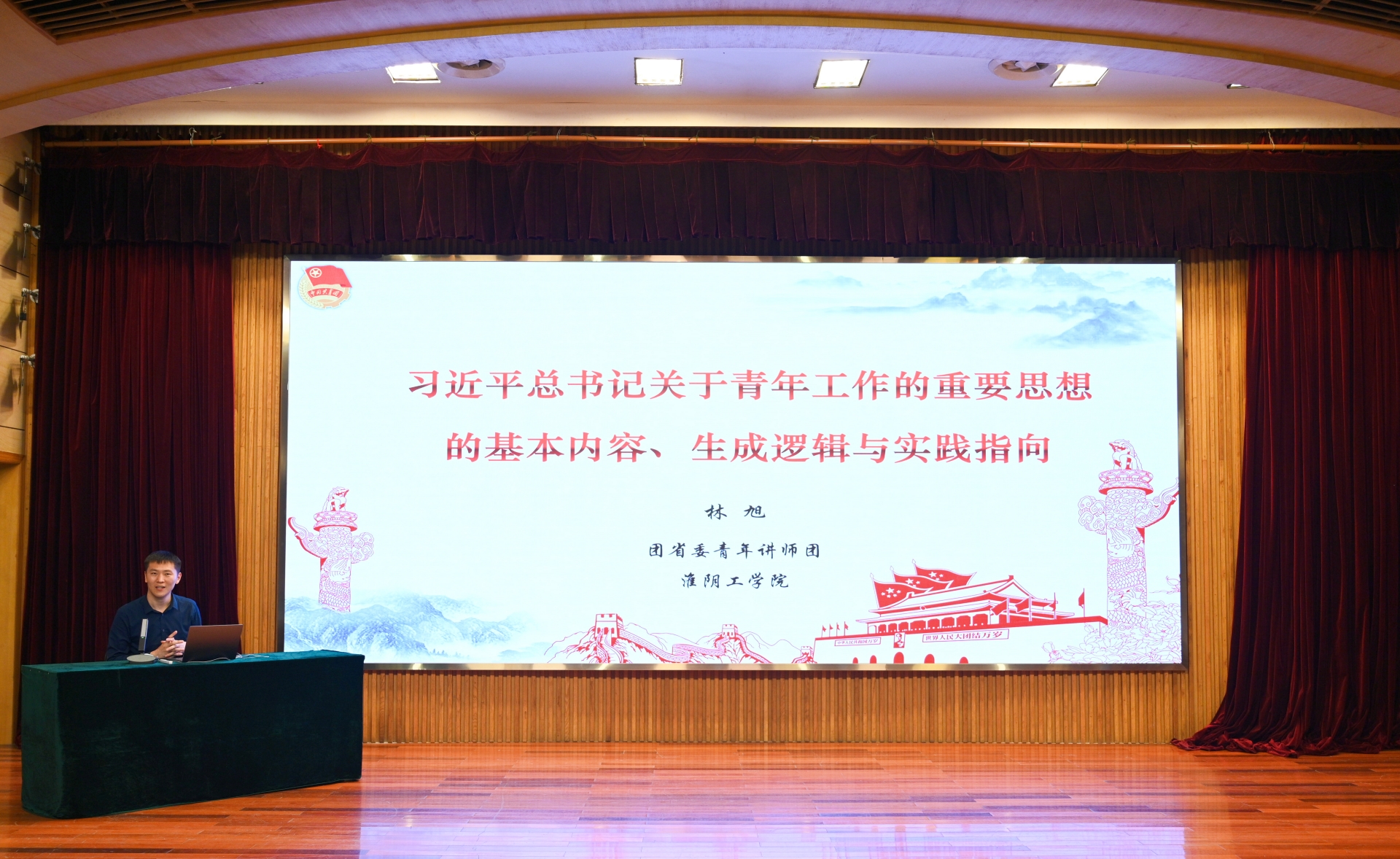 开班仪式后,团省委“青年讲师团”成员、江苏高校团干部思政技能大比武思政教师专项赛特等奖获得者、淮阴工天博体育 马克思主义天博体育 中国近现代史纲要教研室副主任林旭以“习近平总书记关于青年工作的重要思想的基本内容、生成逻辑与实践指向”为题,从中国青年运动的时代主题、加强对青年的政治引领、坚定不移全面从严治团、加强党对青年工作的领导等4个方面对习近平总书记关于青年工作的重要思想作了系统梳理,既有理论概括,又有实践案例。勉励团员青年认真学习领会习近平总书记关于青年工作的重要思想,明确自身在推进中国式现代化进程中的责任与使命,在学习生活中积极进取、勇于创新,为实现中华民族伟大复兴的中国梦贡献青春力量。