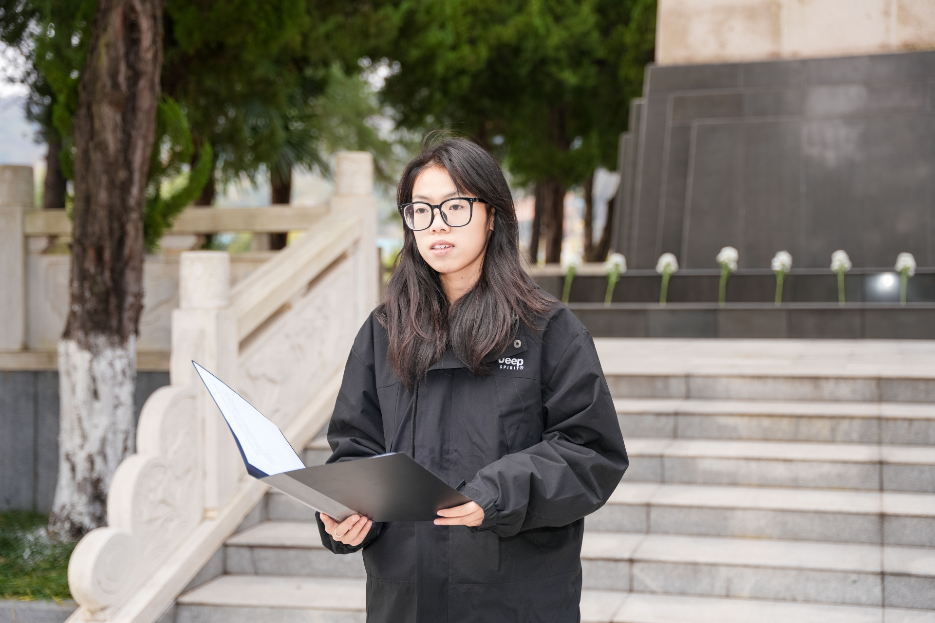 全体成员于纪念碑前肃立,为革命烈士默哀,向先烈们致以崇高的敬意,表达自己对先烈们的哀思。