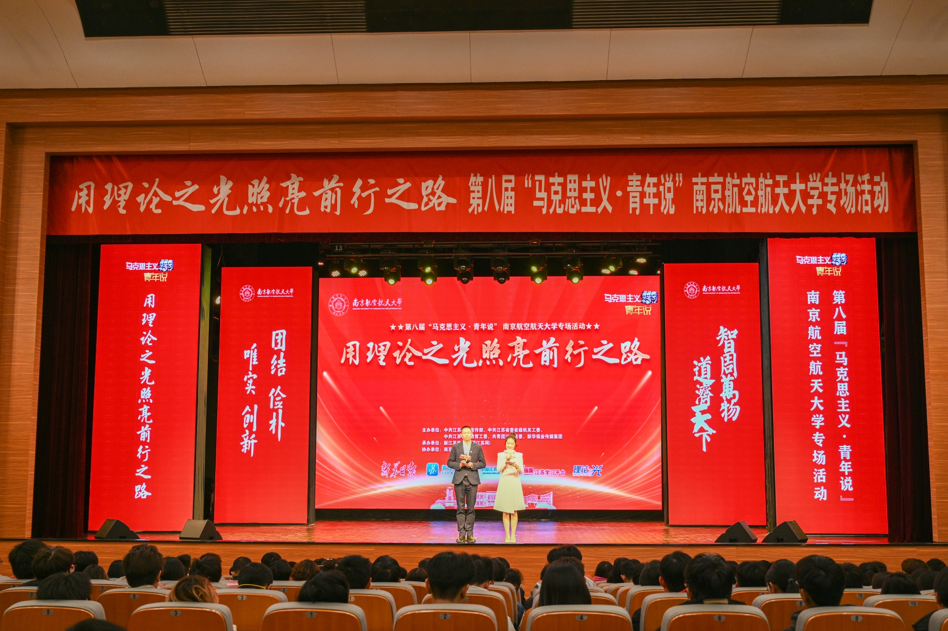 “科技强国,有我!民族复兴,有我!”12月20日,由省委宣传部、省委省级机关工委、省委教育工委、共青团江苏省委、新华报业传媒集团共同主办,新江苏传媒(中国江苏网)承办的第八届“马克思主义·青年说”活动走进南京航空航天大学。为团员青年们带去一场理论盛宴,引导他们在新时代的浪潮中,深刻领悟科学家精神,肩负起推动科技创新、实现科技强国的责任使命。天博体育 团委副书记魏兴彪带领天博体育 第十四期“青马工程”学员和系班团学骨干共150余人参加此次活动。