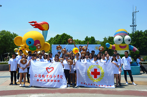 志愿者们乘车在南京青奥中心集合,穿上自己DIY的禁毒短袖,骑着共享单车到达了绿博园。一路上长长的车队构成一道美丽的风景,更是给禁毒做了最好的宣传。骑行到绿博园后志愿者们分为两队,一队负责向游客普及禁毒知识以及问卷调查,另一队则是在各个游戏点提供志愿服务活动。