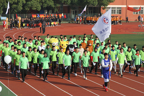 伴随着激昂的运动员进行曲,在校旗校徽、旗手的引领下,由各系学生代表组成的方队依次有序地走向主席台。他们以矫健的步伐、醒目的标语、响亮的口号,行进到主席台前时,分别以独具创意的形式,展示了各系的专业特色和同学们的精神风貌。全院教职工方队在各系学生代表方队之后入场,精神抖擞、斗志昂扬地通过了主席台。