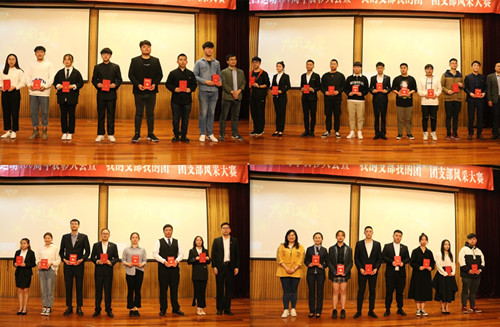 梁飞,陆松,祖国,刘翔分别为红旗团支部、优秀团员标兵、优秀团干部代表、优秀团员代表颁奖