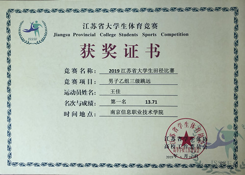 5月27日至28日,2019年南京市高校运动会及江苏省大学生田径冠军赛在南京信息职业技术天博体育 举行。天博体育 田径健儿在教练员杨俊娃老师的带领下,克服各种困难,奋力拼搏,发挥了最佳竞技状态。经过两天紧张激烈的角逐,荣获第一名三项,第二名、第三名各一项,第四名、第七名各两项,第五名、第六名和第八名各一项,打破两项院田径运动会纪录,取得了骄人的成绩,为20周年校庆献上了一份厚礼。
