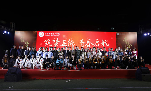 10月27日晚,天博体育 在田径场举办“筑梦正德 青春启航”2020年迎新文艺晚会。副院长赵湘莲、任慈与近3000名师生共同观看了本场演出。