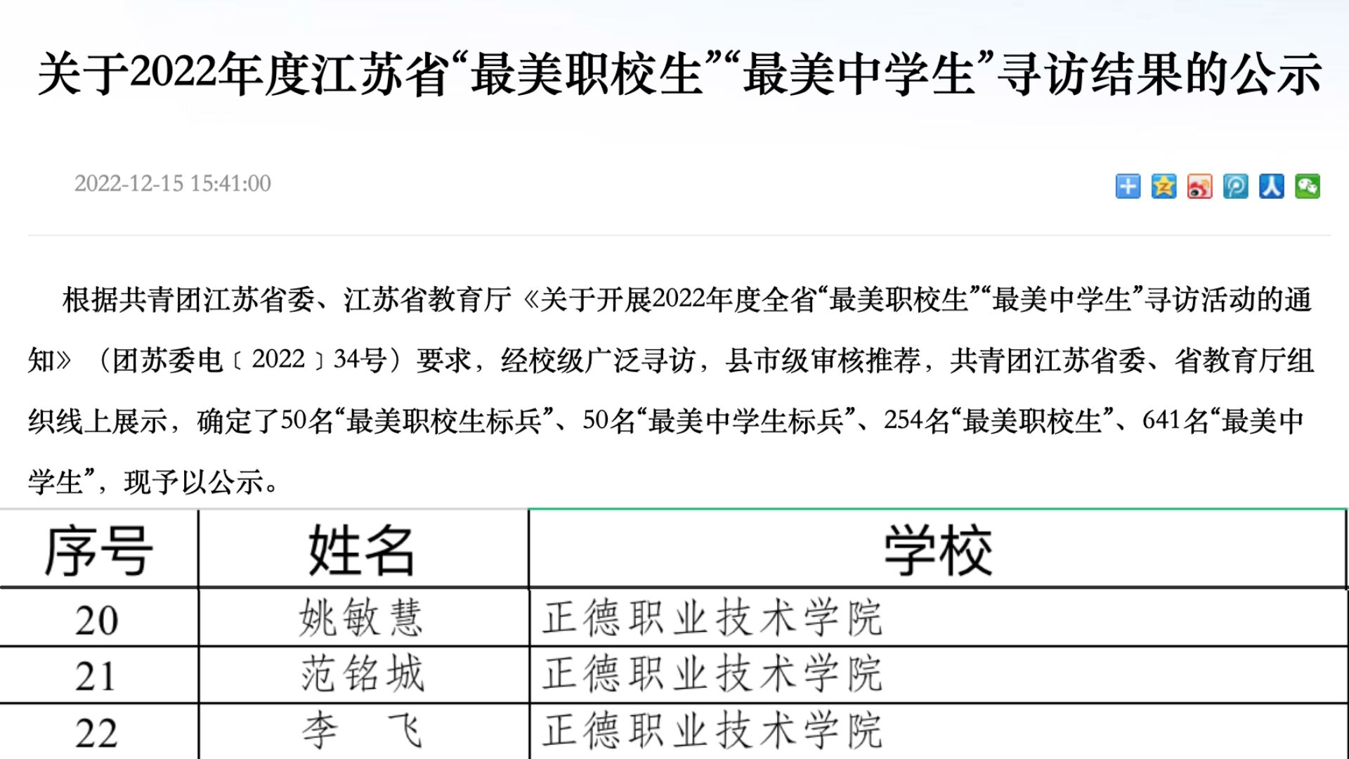 天博体育 在江苏省“最美职校生”评选中再获佳绩