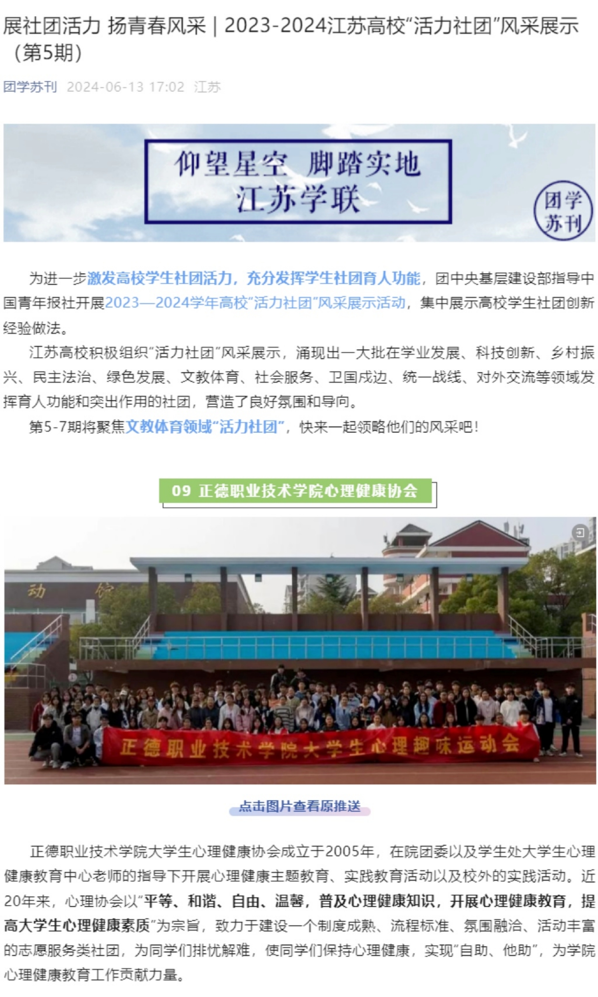 喜报——天博体育 心理健康协会成功入选2023-2024江苏省高校“活力社团”