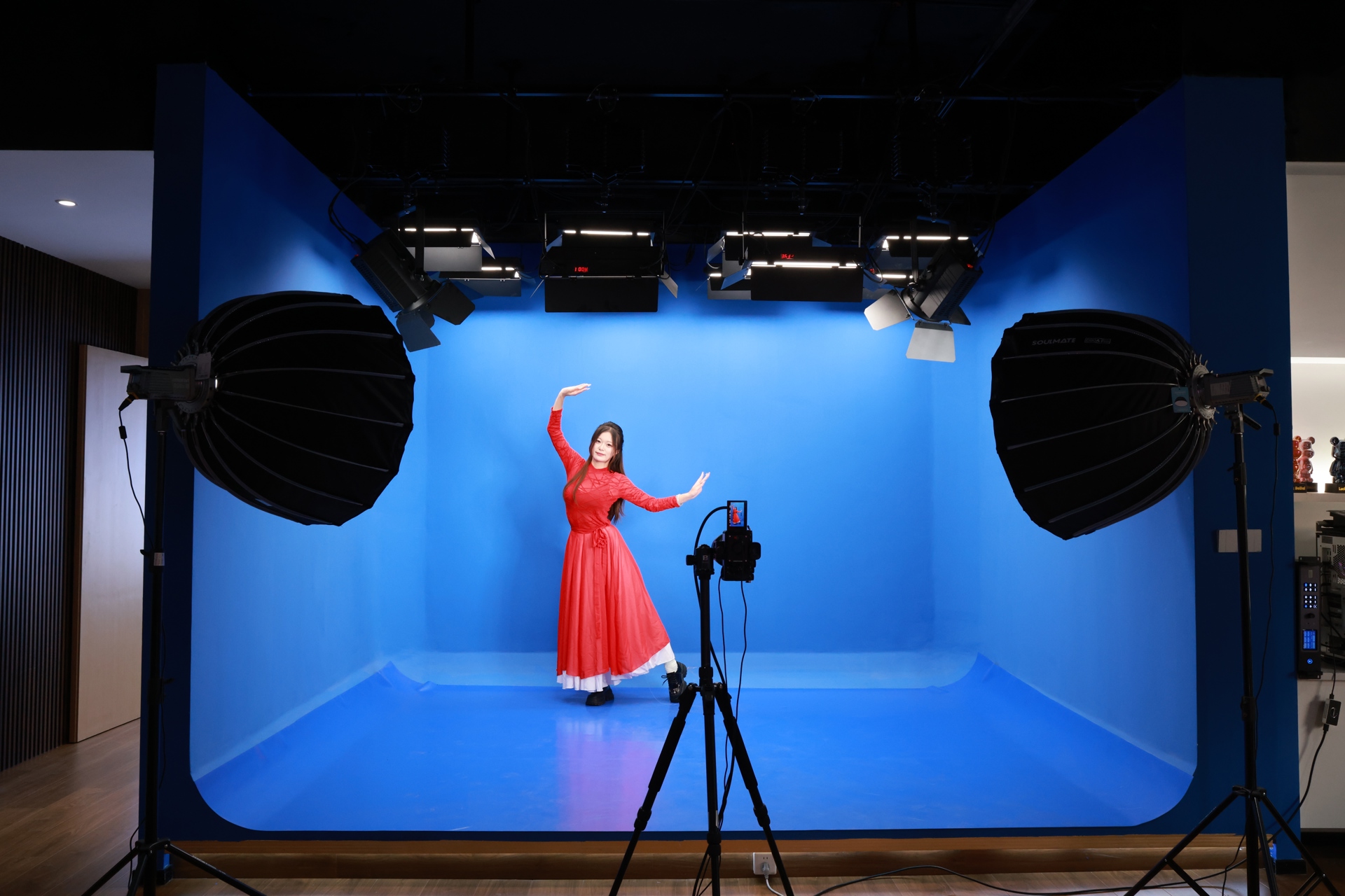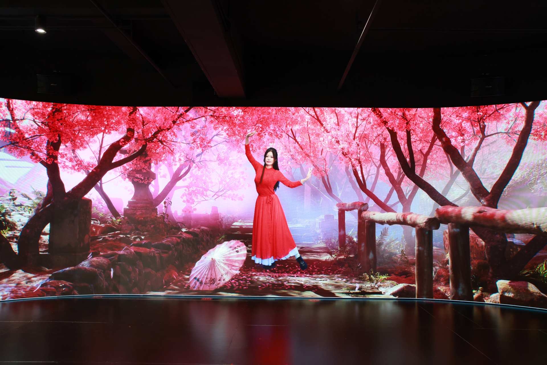 实训中心基于XR大屏交互系统构建虚实融合教学空间,打造“数字工具箱+场景资源库”双驱动模式。学生可自由调用非遗文化、元宇宙空间等各类数字场景素材,通过光影参数调节、虚拟机位架设等技术,完成直播间场景美学设计与技术调试。在渲染引擎支持下,实现商品3D模型与虚拟场景的实时融合,培养数字空间搭建、多模态内容生成等硬核技术能力。