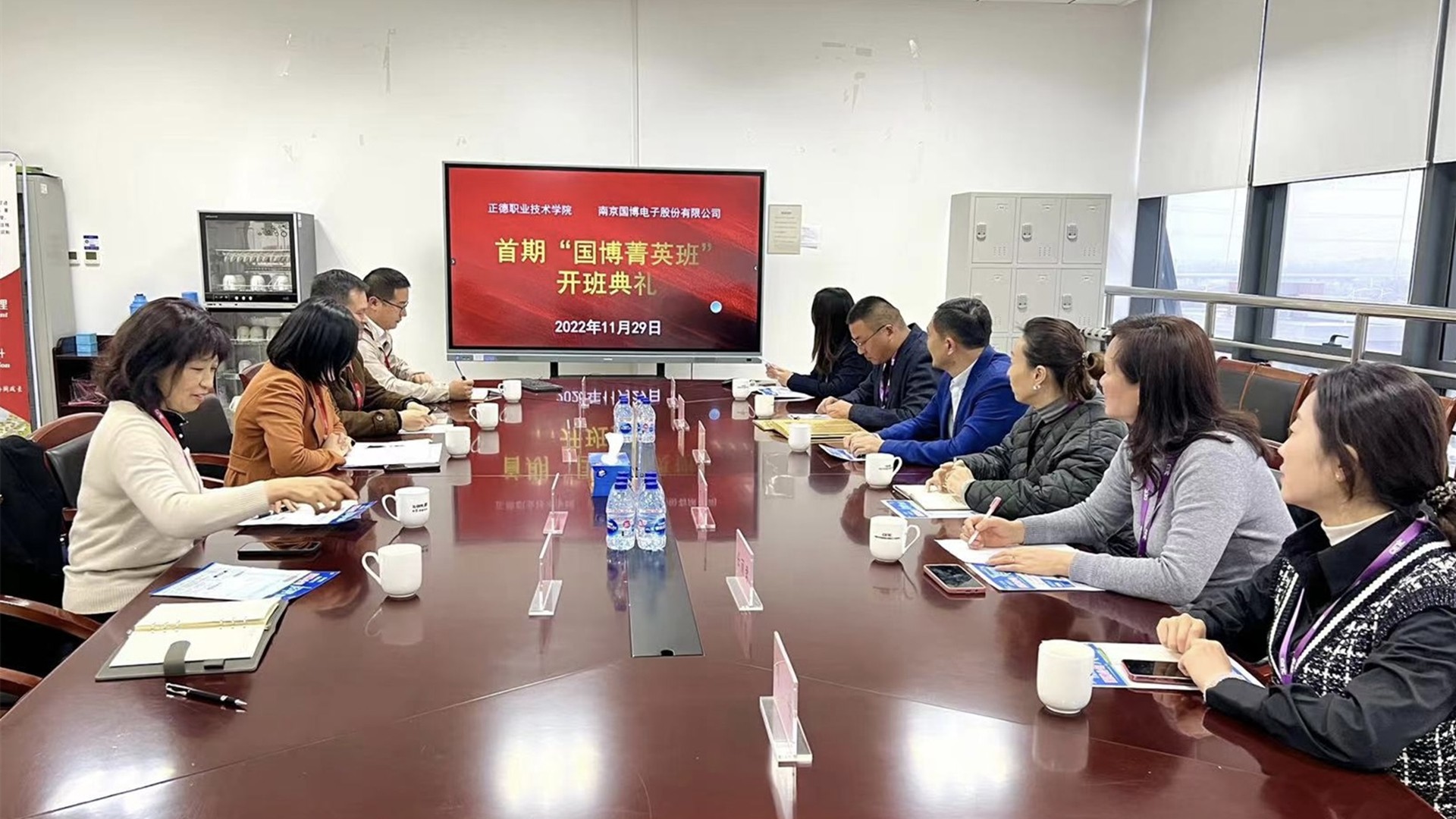 11月29日下午,首期“国博菁英班”开班典礼暨产业教授聘任仪式在南京国博电子股份有限公司隆重举行。国博公司副总经理孙春妹、人力资源部总经理王家波、招聘主管韦静,天博体育 副院长江爱华、教务处副处长兼校企合作办主任陆松、汽车与机电工程系系主任任丽君、民用航空系系主任吴慧、电子与信息技术系副教授刘佳出席活动。