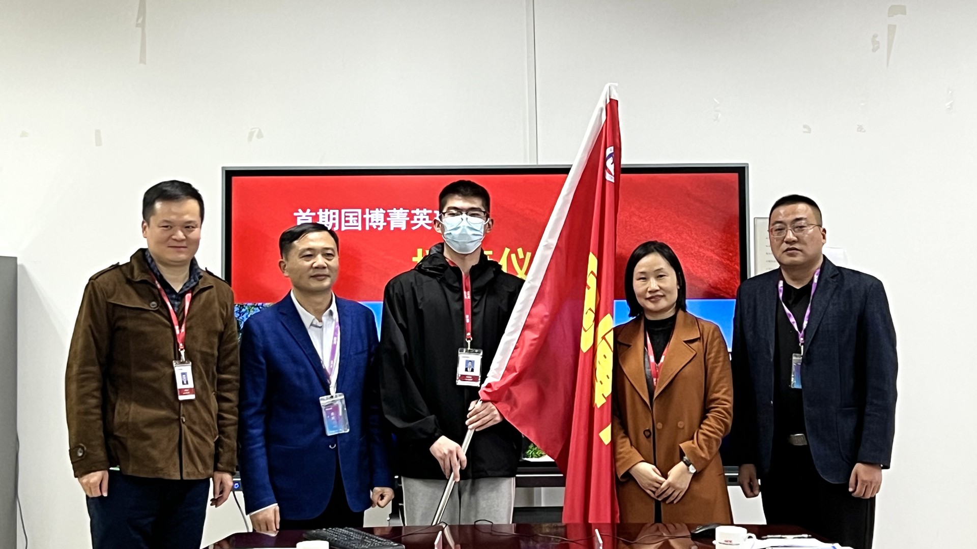 陆松介绍了首期“国博菁英班”筹备情况。自去年10月江爱华副院长带队首次赴国博调研考察以来,到今年10月江爱华副院长再次带队赴国博洽谈交流,正德天博体育 和国博电子的校企合作逐步成型、成熟、成效、成势。首期“国博菁英班”面向智能制造、智能装备、信息技术专业群,通过线上报名、系部选拔、企业面试,最终遴选了18名优秀学生组班。江爱华、孙春妹一同为“国博菁英班”授旗。