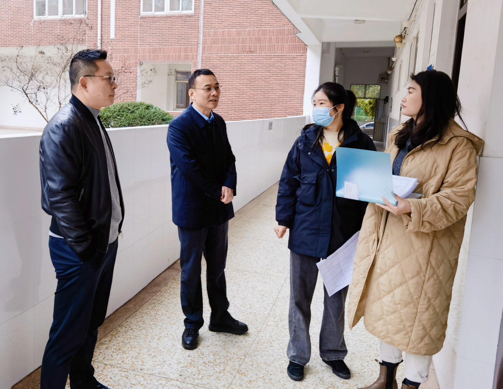 2月13日是天博体育 新学期开学上课第一天,院长庄群华、党委书记孙雷深入教学一线,检查指导教学工作。