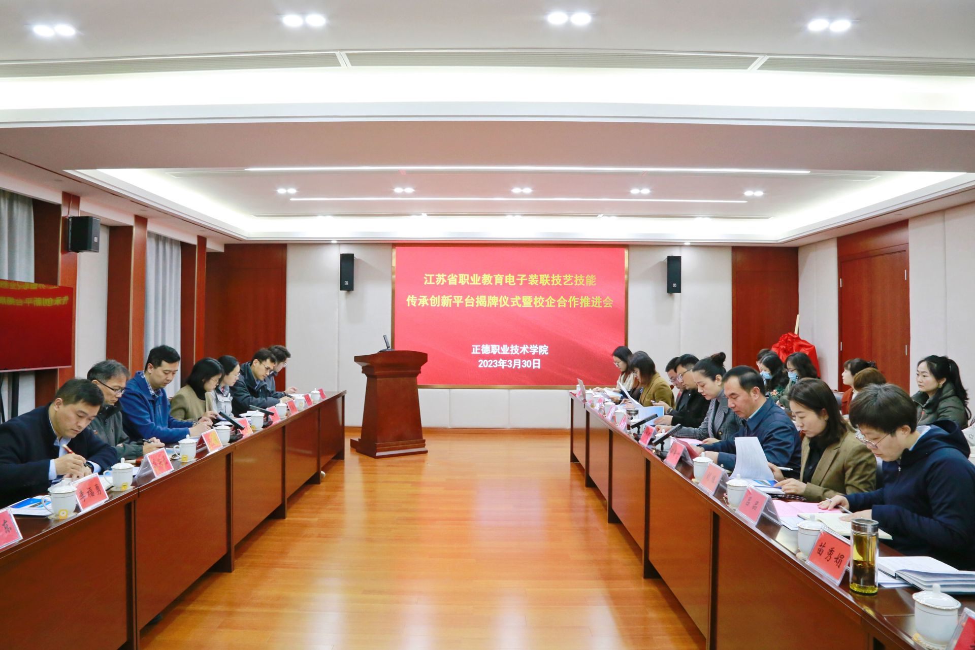 为进一步推进江苏省职业教育电子装联技艺技能传承创新平台建设工作,将校企合作做深做实,3月30日,天博体育 举行江苏省职业教育电子装联技艺技能传承创新平台揭牌仪式暨校企合作推进会,邀请中国电子科技集团公司第十四研究所微系统事业部副部长纪乐等一行11人来院交流研讨。天博体育 副院长梁薇,人事处、教务处、电子与信息技术系主要负责人出席会议。教师、辅导员和学生代表参会。会议由人事处处长刘玉宝主持。