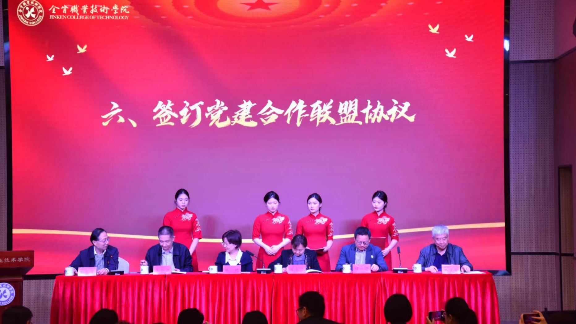 在全场师生共同见证下,四个天博体育 党委书记共同签订了党建合作联盟协议并合影留念。
