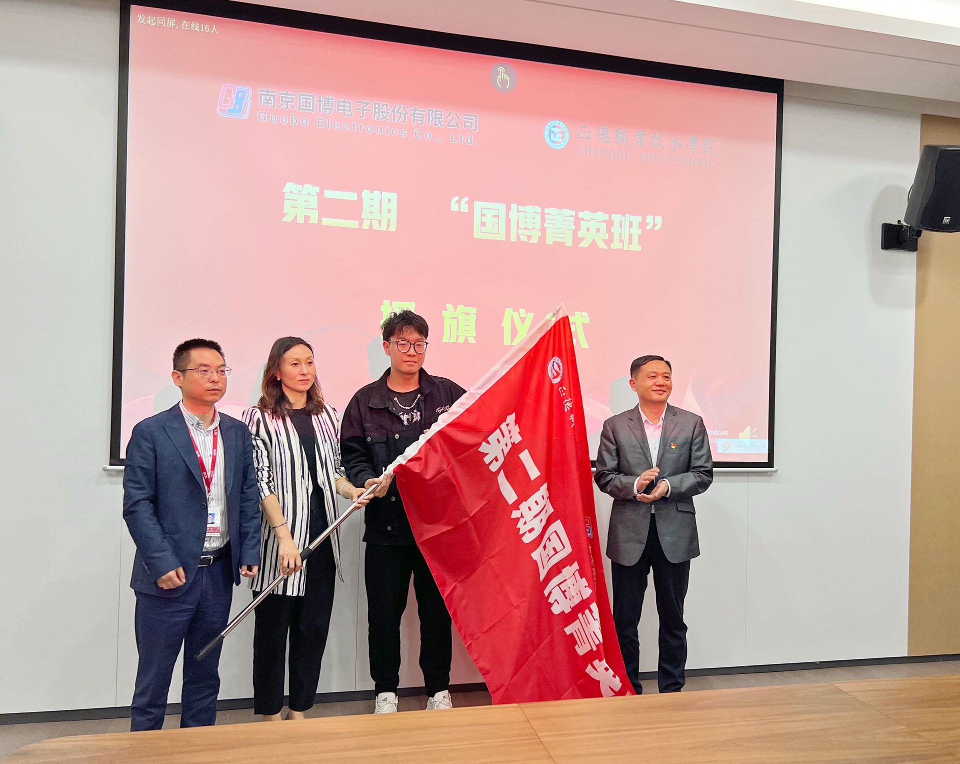 孙雷对国博电子在校企合作中的大力支持和所做贡献表示由衷的感谢,对入选第二期国博菁英班的48名学员表示热烈祝贺。他表示正德职业技术天博体育 与国博公司有情有缘,在2021年开启校企合作篇章,短短2年时间,合作深度不断加深、合作广度不断拓展、合作温度不断升级、合作成效不断显现,从携手共建的“国博菁英班”,到今日,共建“国大”现场工程师天博体育 、思政教育实践基地、教师工程实践基地等,不断为校企合作人才培养开启了共同育人的新模式、新格局。他提出三点:一是坚持党建示范,团建引领,把立德树人贯穿到合作共建全过程。二是强化产教融合,对标对表,不断提升产教一体建设。三是注重双向赋能,推动发展,打造开放共享校企合作示范组合。他期望“正德-国博”充分依托现场工程师天博体育 平台,共同建好用好思政教育实践基地,实行资源共享、基地共建、人才共育、合作共赢,为培养现代化高素质技术技能人才和支撑服务现代产业发展贡献力量。