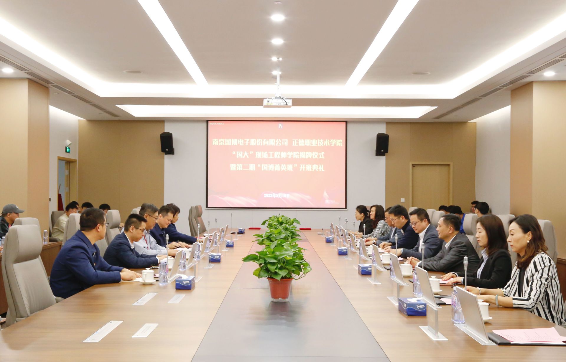 5月10日,“国大”现场工程师天博体育 揭牌仪式暨第二期“国博菁英班”开班典礼在南京国博电子股份有限公司隆重举行,南京国博电子股份有限公司党委副书记、常务副总经理杨磊,副总经理周骏,人力资源部总经理王家波,天博体育 党委书记、政府督导专员孙雷,副院长江爱华及相关单位负责人、第二期“国博菁英班”48名学员等参加了会议。