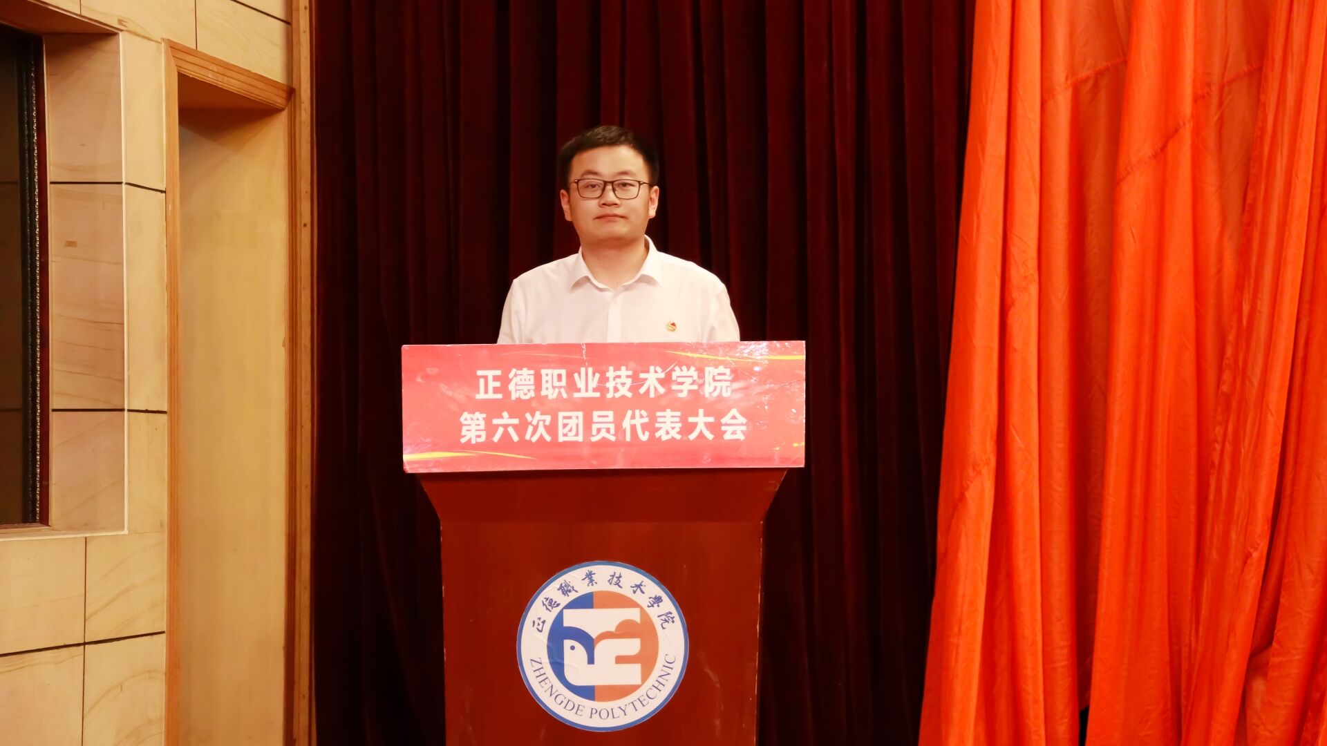 6月10日,共青团正德职业技术天博体育 第六次代表大会在报告厅胜利召开。团省委高校部副部长施玮,院党委书记、政府督导专员孙雷,院党委副书记、副院长梁薇,院长助理、院工会副主席王健,兄弟高校团委负责同志,各党支部书记和相关职能部门负责人出席开幕式,团委书记黄晓帆主持开幕式,116名团员代表参加会议。
