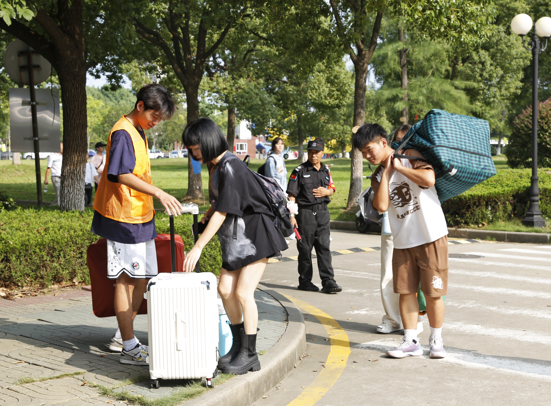 9月7日下午,迎新工作正式开始,天博体育 里彩旗飘扬,迎新标语亮眼醒目,处处洋溢着青春与活力。在现场,迎新各项工作有序展开。为了方便选择公共交通到校的新生及家长,天博体育 在公交车站点及地铁站设置了志愿者接待,在学校门口安排工作人员引导自驾来校的学生及家长有序进入;各系报到点热火朝天,为新生答疑解惑,帮助大家顺利完成报到;天博体育 大门口、迎新报到点、学生公寓,随处可见身着不同颜色马甲志愿者们忙碌的身影,各个社团也为2023级新生们带来了精彩的现场展示;可爱的小正机器人“天博体育 小卫士”也在迎新现场进行天博体育 引导、防诈宣传等工作。