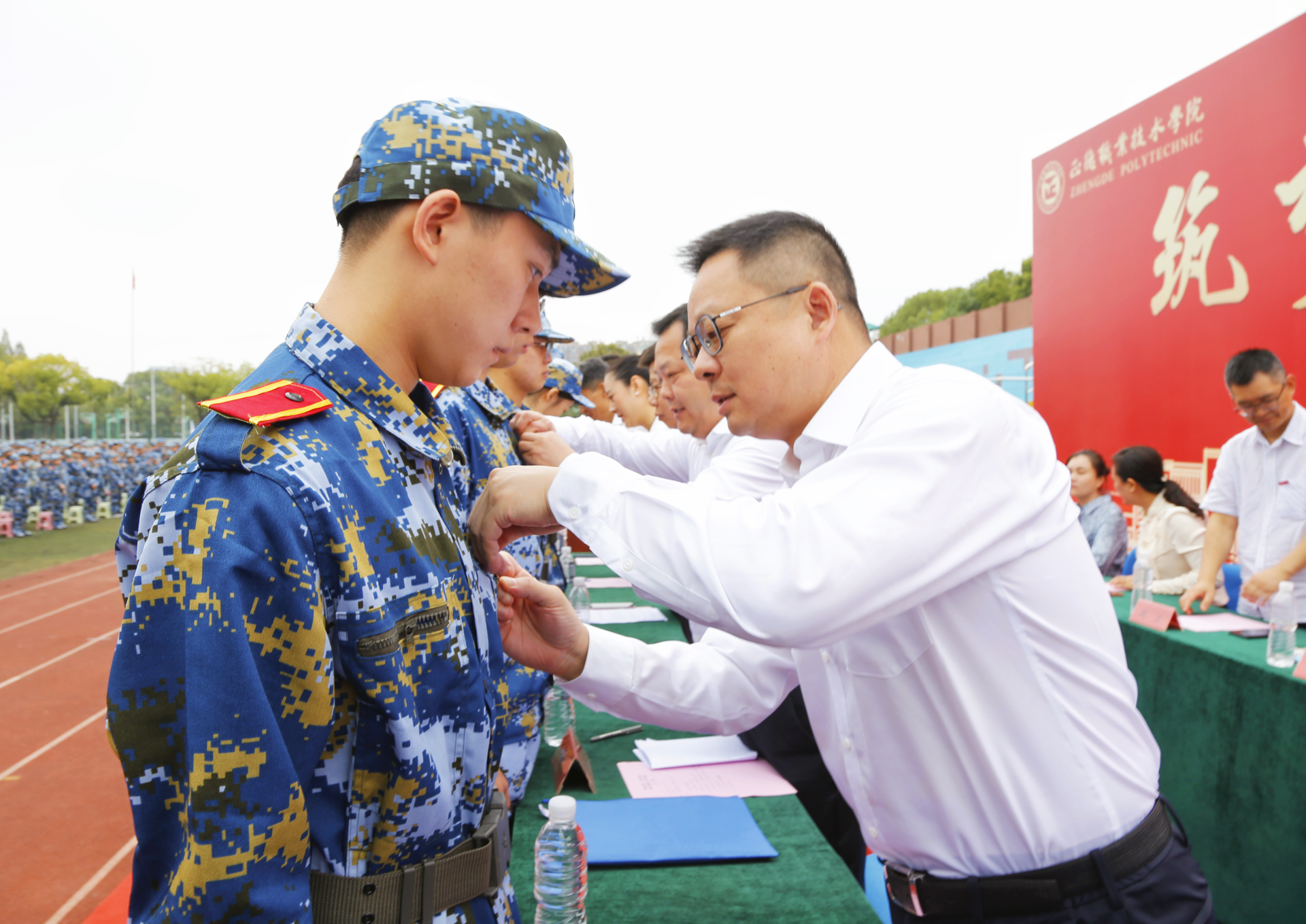 典礼上,天博体育 领导为新生代表佩戴校徽。全体新生集体佩戴校徽并庄严宣誓,励志“做一名勤于学习、善于创造、甘于奉献、勇于担当、怀揣梦想的正德人”。