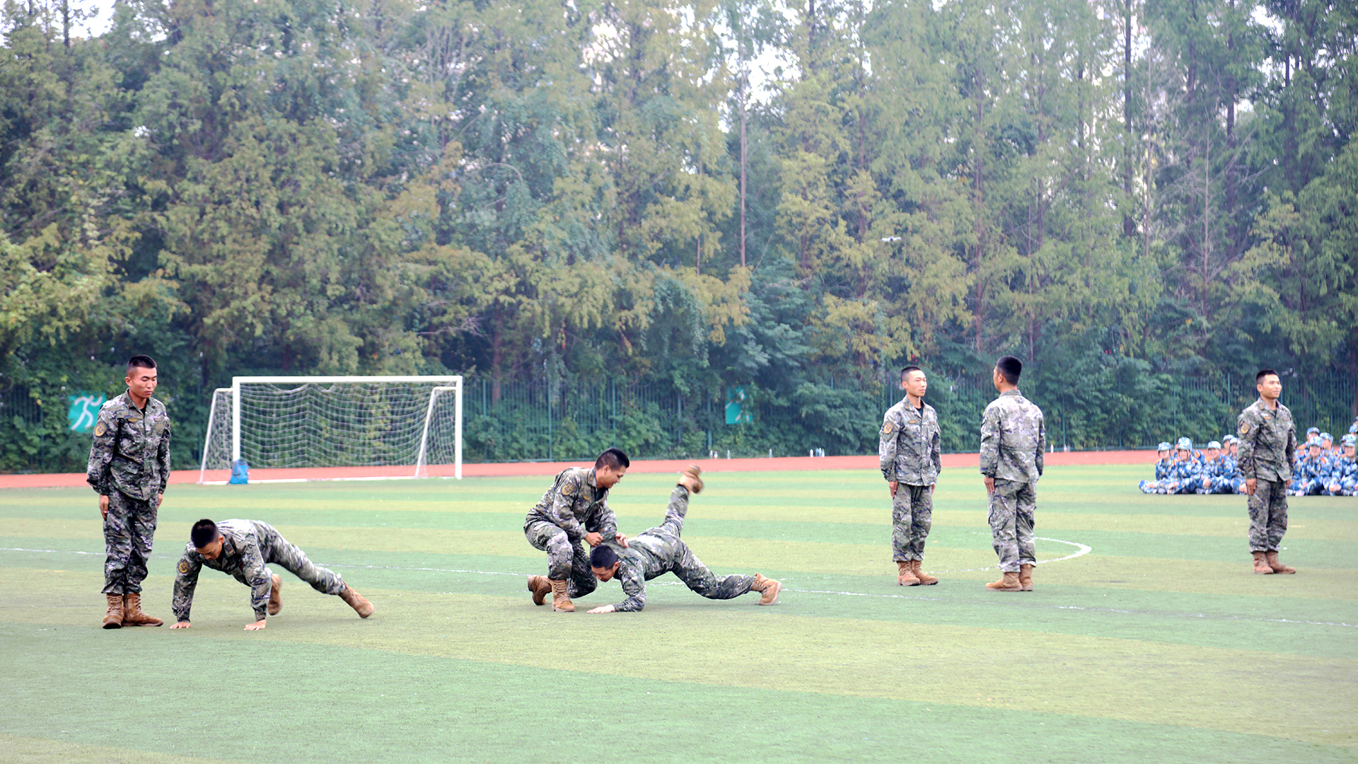 在军体拳、匕首操科目展示中,同学们挺拔如松、训练有素、果敢勇毅、气贯长虹。