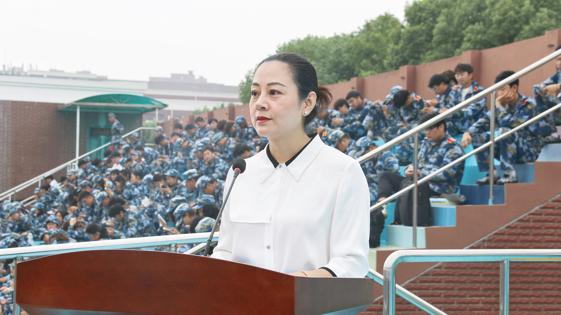 梁薇向承训部队赠送锦旗,并作出总结讲话。她表示,军训团全体官兵精心组织,科学施训,她对承训部队全体教官表示由衷的感谢。她对同学们经受住了14天军训的严格考验,展现了当代大学生良好的精神风貌和顽强的意志品质表示骄傲和欣慰。同时,她也提出三点希望:一是以军训为“动员令”,发扬“任尔风雨,万击还韧”的战斗精神,紧跟时代步伐立志开拓,努力成长为新时代的奋斗者;二是以军训为“导航仪”,发扬“叩石垦壤,挖山不止”的学习精神,知行合一,深入实践,努力成长为新使命的答卷者;三是以军训为“定盘星”,发扬“暮雪朝霞,意气不改”的创新精神,探索真知,敢为人先,努力成长为新征程的奔跑者。