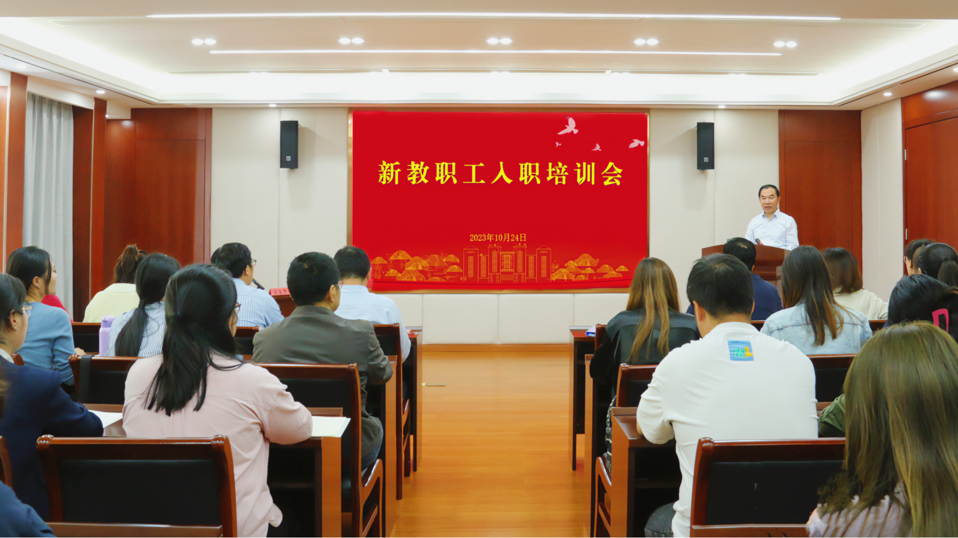 10月24日,天博体育 举办新教职工入职培训会,院长孙永荣出席培训会,人事处处长刘玉宝、教务处处长王俊、学生处处长祝佳俊、党群工作部副部长雷杨,优秀教师代表,以及全体新教职工参加会议。会议由人事处处长刘玉宝主持。