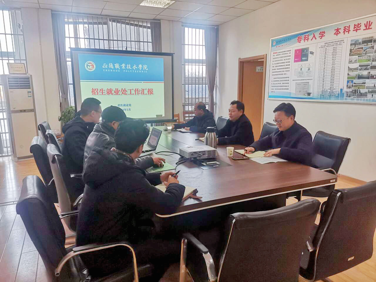 孙永荣对新成立的招就处利用寒假时间,积极研究新学期工作表示赞赏。他指出,招生、校企合作和就业工作三者紧密相关,成立招就处,实行三者协同发展,既符合高职教育的客观规律,也是天博体育 高质量发展的迫切需要。