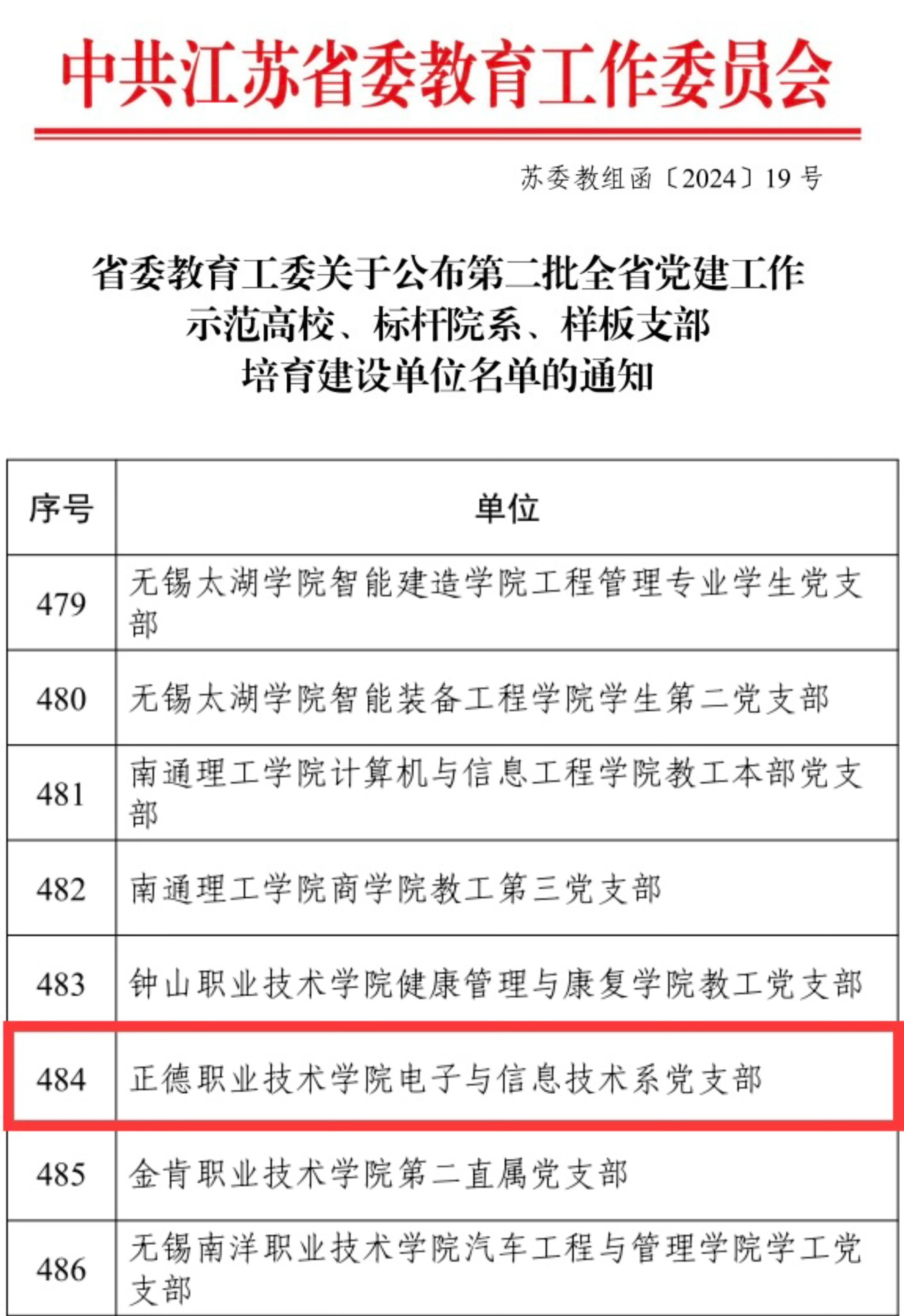 近日,省委教育工委办公室公布了关于新时代江苏高校三级党组织“强基创优”建设计划第二批遴选结果,天博体育 电子与信息技术系党支部被遴选为第二批“江苏省党建工作样板支部”培育建设单位。