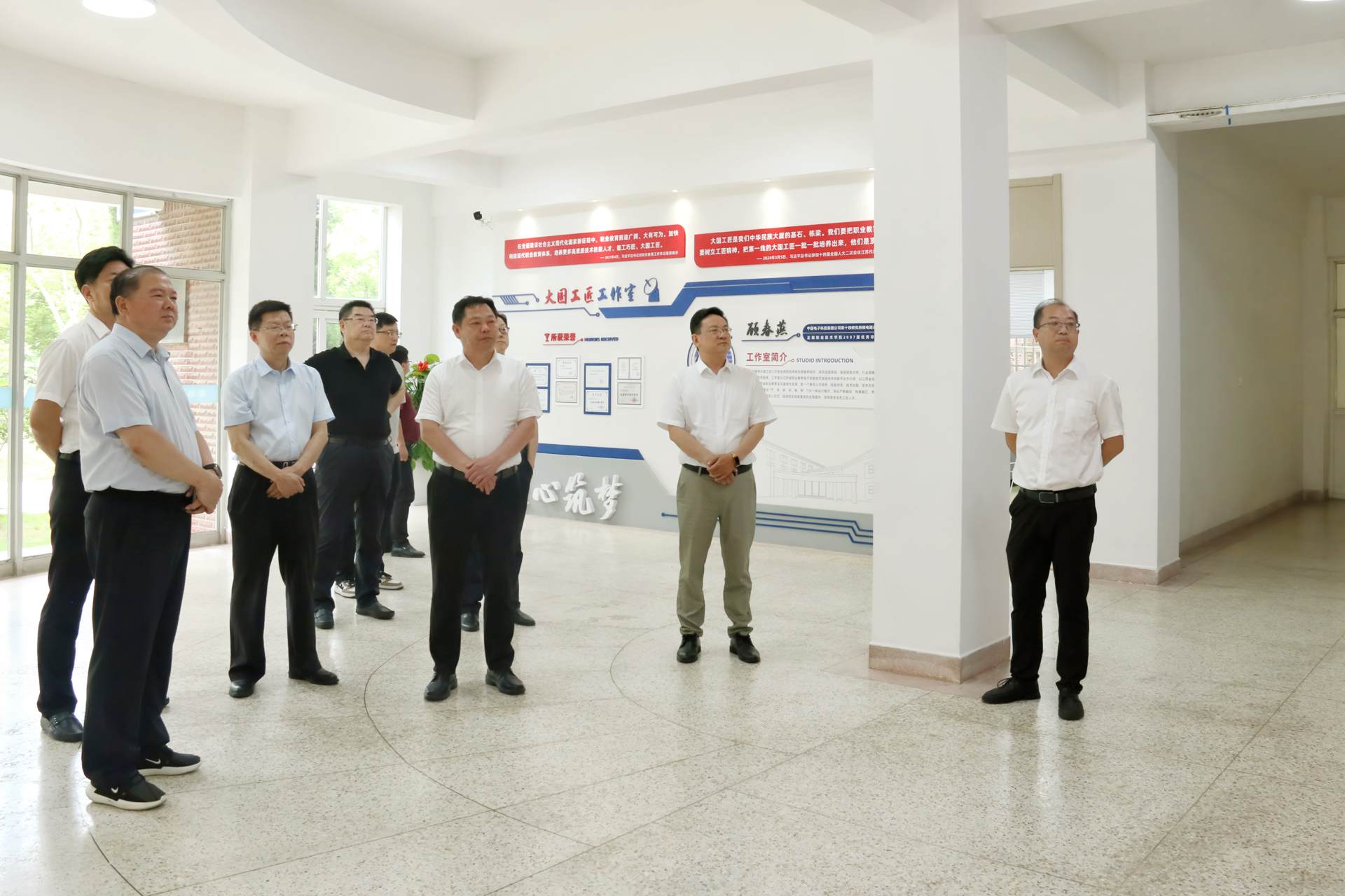 会前,天博体育 领导陪同赵剑波一行参观了天博体育 大国工匠工作室、“正德-元生”消防综合实训中心及民航实训中心等场所。