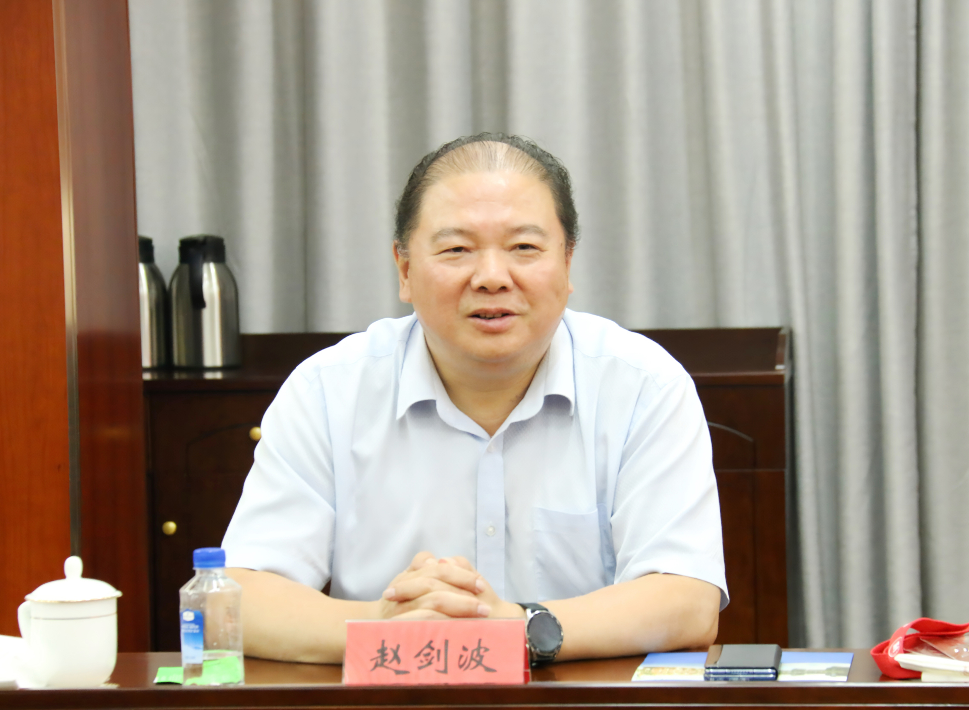 6月11日下午,海安市人大常委会副主任赵剑波带队来我校调研交流,海安市人大常委会教科文卫工作委员会主任吉清海,教体局党组副书记兼海安中专党委书记、校长杭华,海安中专党委委员、副校长韩春宏,江苏威尔曼科技有限公司董事长周经成,天博体育 院长孙永荣,副院长高斌、赵凯雷,院长助理、党政办公室主任王伟,院长助理、招生就业处处长王墀及教务处主要负责人参加调研。活动由高斌主持。