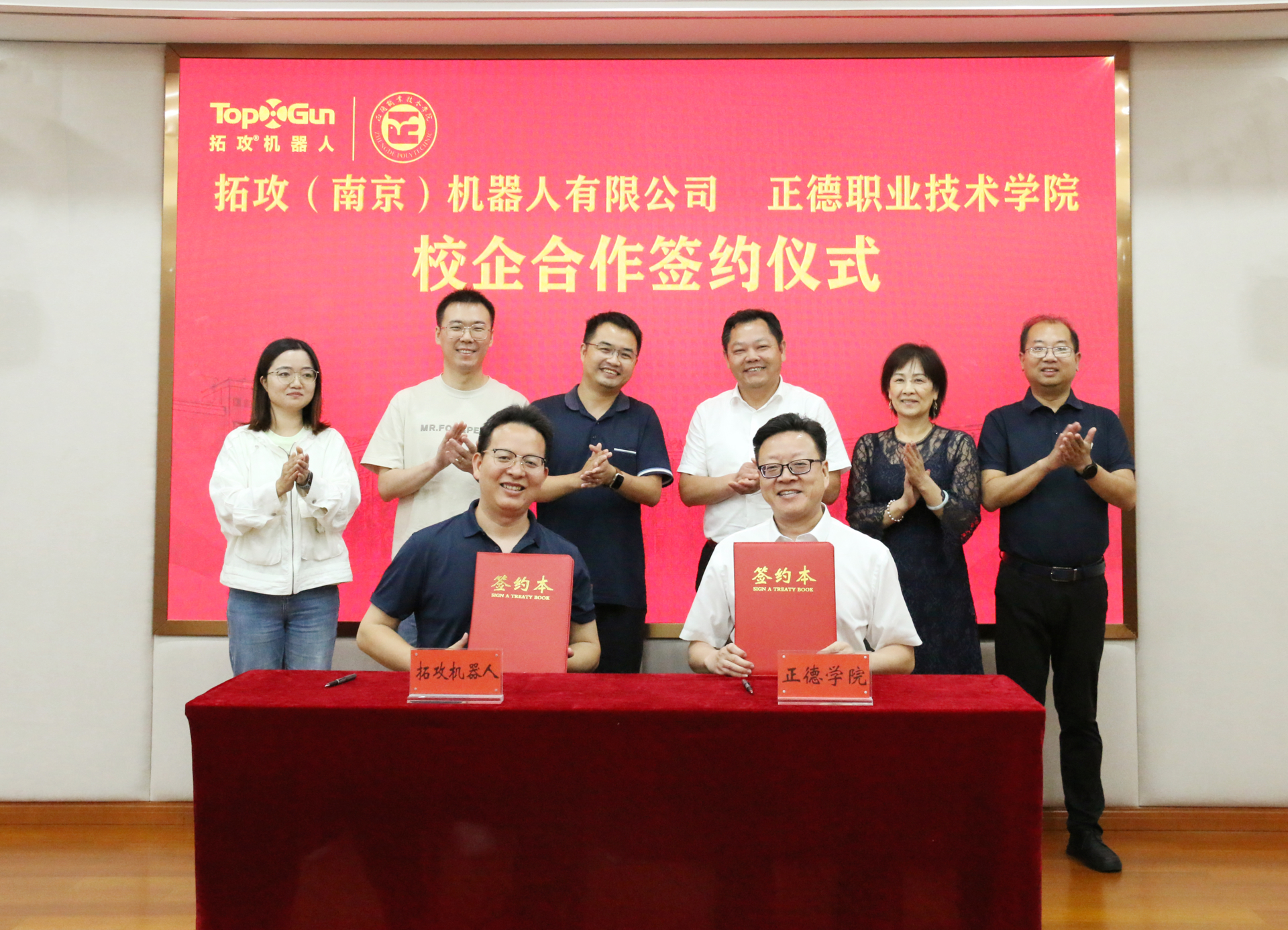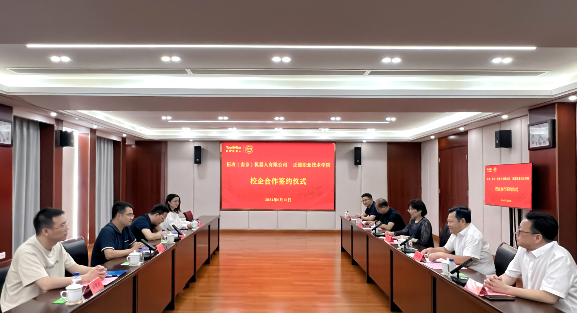 6月18日,正德职业技术天博体育 与拓攻(南京)机器人有限公司举行了校企合作签约仪式。拓攻机器人联席CEO尹亮亮,自动驾驶技术研究院院长徐进、教育事业部经理杨有运、工业设计总监田静,正德天博体育 院长孙永荣,副院长赵宇、赵凯雷,院长助理、党政办主任王伟,院长助理、招生就业处处长王墀以及相关部门负责人出席签约仪式。仪式由赵宇主持。