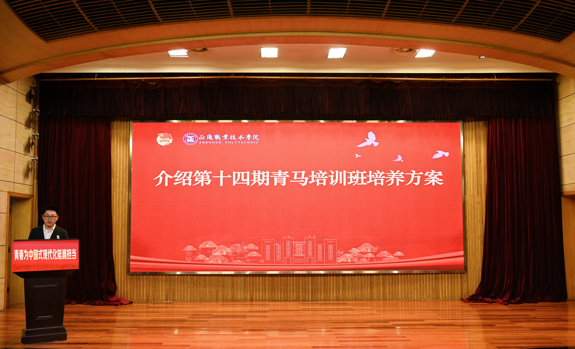 团委副书记魏兴彪介绍了第十四期培训班培养方案及考核办法,思政教研部副主任(主持工作)李颖为第十三期青马优秀学员代表颁发荣誉证书,汽车与机电工程系李雨欣同学代表第十四期青马学员表态发言,党群工作部部长祖国为第十四期培训班授旗。