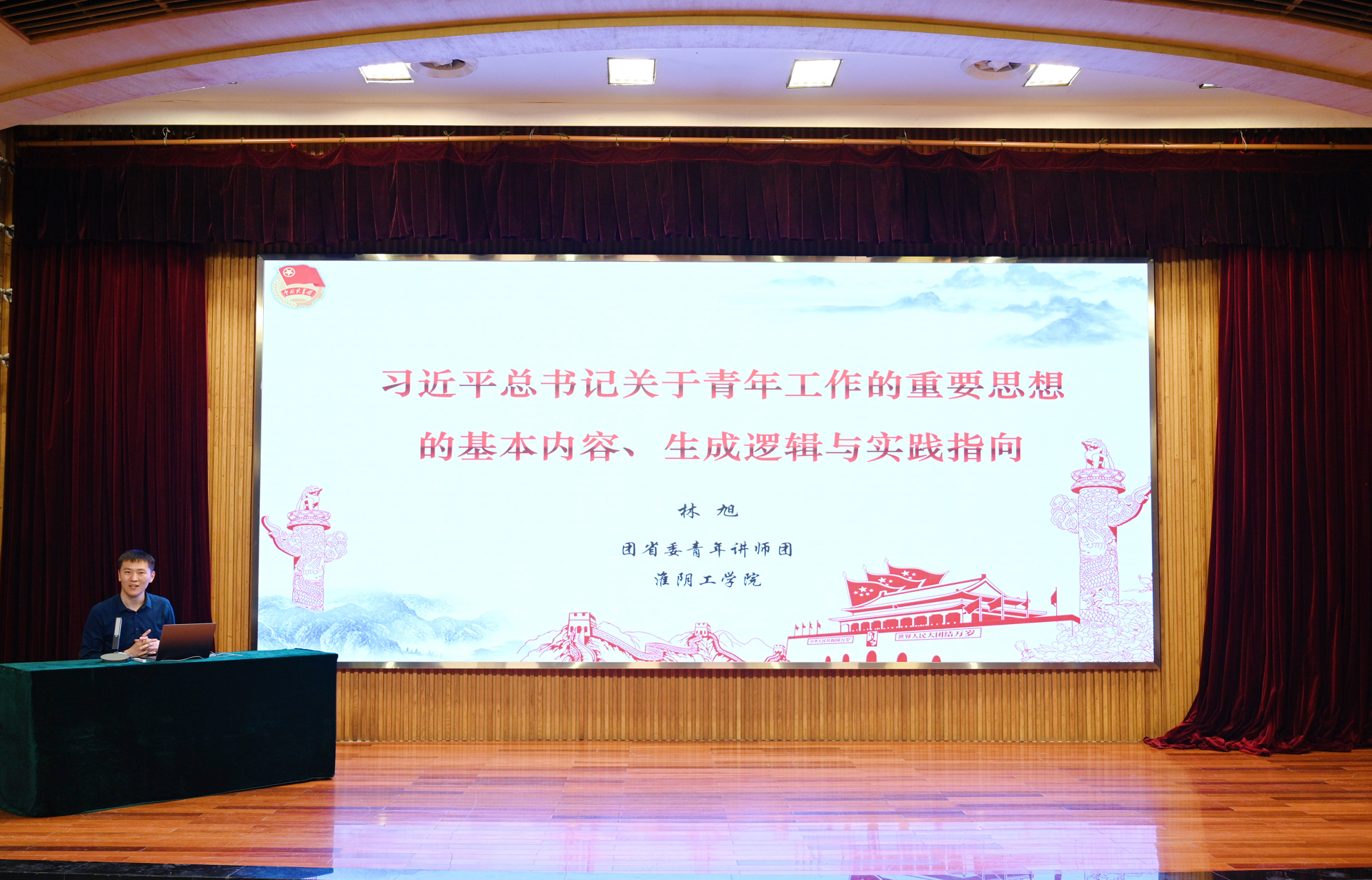 开班仪式后,团省委“青年讲师团”成员、江苏高校团干部思政技能大比武思政教师专项赛特等奖获得者、淮阴工天博体育 马克思主义天博体育 中国近现代史纲要教研室副主任林旭以“习近平总书记关于青年工作的重要思想的基本内容、生成逻辑与实践指向”为题,从中国青年运动的时代主题、加强对青年的政治引领、坚定不移全面从严治团、加强党对青年工作的领导等四个方面对习近平总书记关于青年工作的重要思想作了系统梳理,既有理论概括,又有实践案例。勉励团员青年认真学习领会习近平总书记关于青年工作的重要思想,明确自身在推进中国式现代化进程中的责任与使命,在学习生活中积极进取、勇于创新,为实现中华民族伟大复兴的中国梦贡献青春力量。