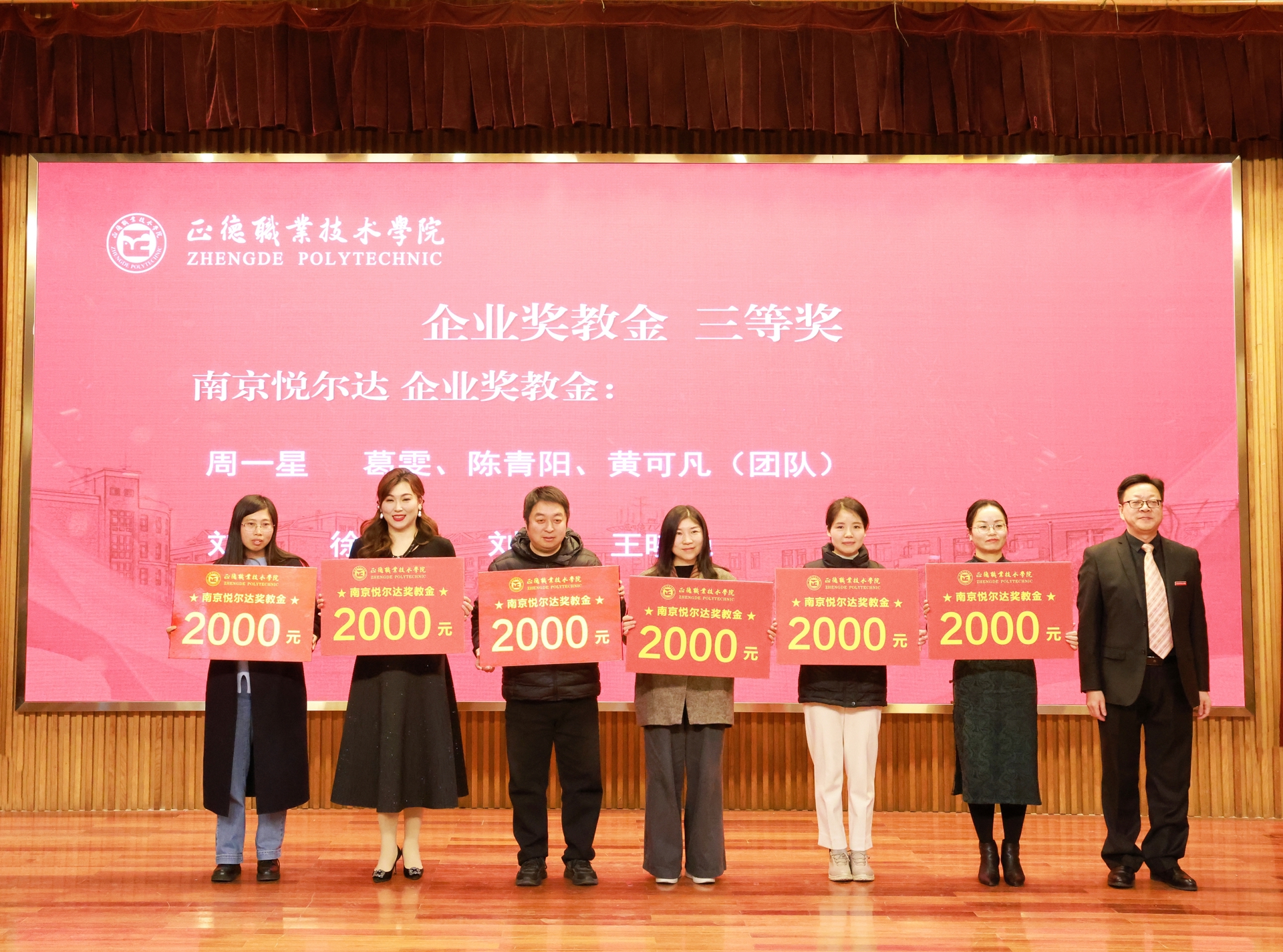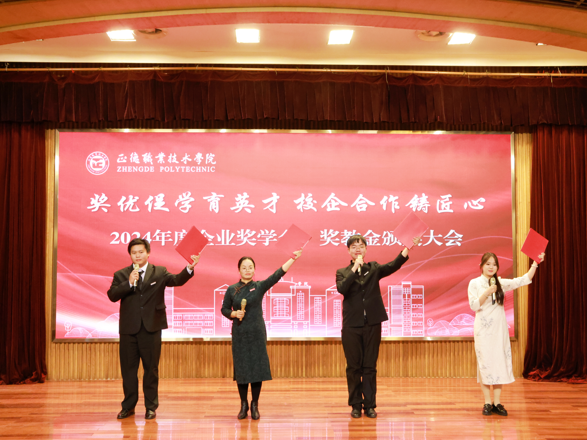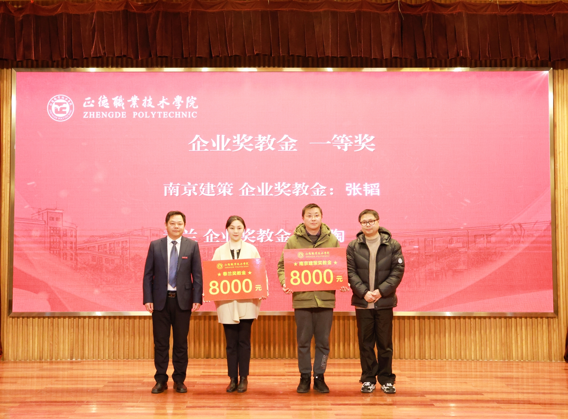 这次企业奖学金、奖教金颁奖大会是正德天博体育 办学历史上的首次,7家企业在校设立企业奖学(教)金,金额高数量多,充分体现了企业对天博体育 办学实力和人才培养质量的高度认可。2024年,天博体育 产教融合工作步入发展快车道:聚焦高端装备、低空经济、“一老一小”等国家战略的产业领域,一年来先后走访了近50家国防军工及行业龙头企业,校企合作单位增长近70%,数量与质量均取得显著突破。积极探索产教融合新模式,与立宝托育、拓攻机器人、南京新手村等企业共建3个高水平实训平台;携手南京建策、上海格思等8家企业,设立了8个订单班,涵盖10个热门专业,全面覆盖所有教学系。校企深度融合,为天博体育 师生构筑了优质的综合实践平台,助力师生在2024年各类竞赛中屡获佳绩。