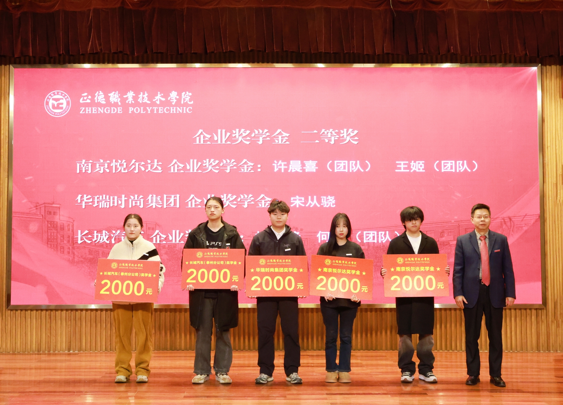 大会在庄严的国歌声中开幕,赵凯雷副院长宣读了天博体育 2024年企业奖学金、奖教金表彰文件,授予秦铭阳等63名学生(团体)“南京悦尔达奖学金”、“华瑞时尚集团奖学金”、“长城汽车奖学金”、“江苏诚尚奖学金”等多项企业奖学金。授予王磊等23名教师“南京悦尔达奖教金”、“华瑞时尚集团奖教金”、“南京建策奖教金”、“春兰奖教金”等多项企业奖教金。