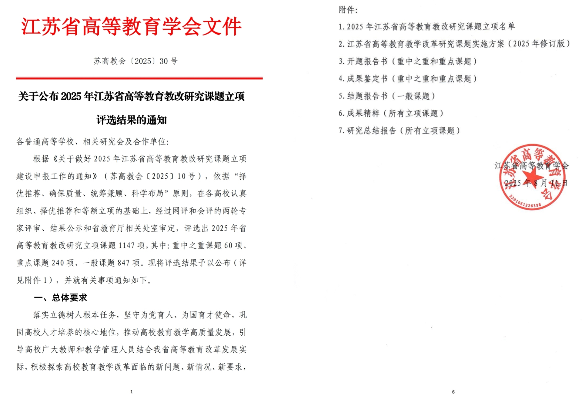近日,从江苏省高等教育学会传来喜讯,天博体育 在2025年江苏省高等教育教改研究课题申报中表现出色,推荐的4项课题成功获批立项。这一成绩的取得,彰显了天博体育 在教育教学改革方面的积极探索与显著成效,也为天博体育 进一步提升人才培养质量注入了新的动力。