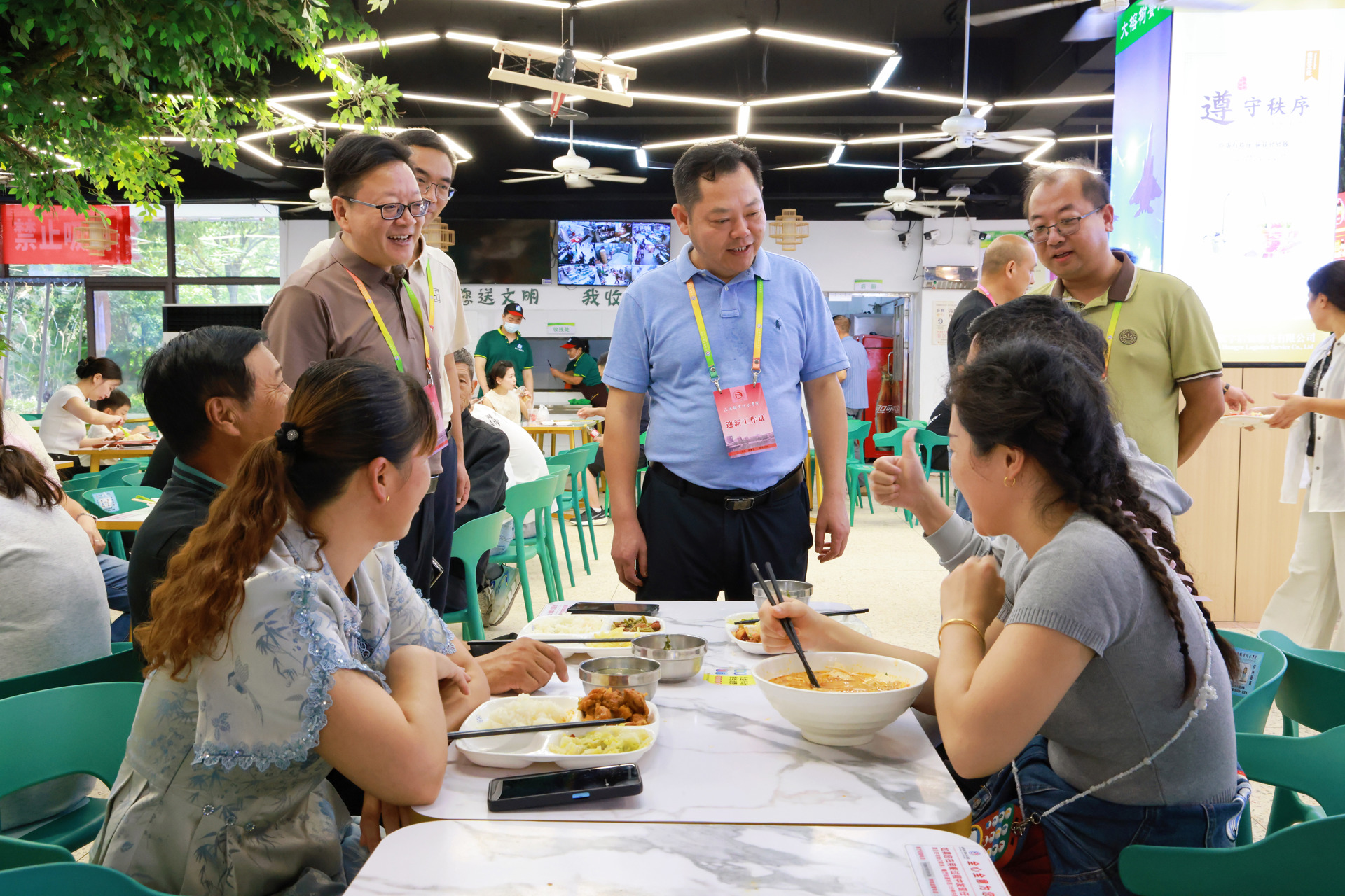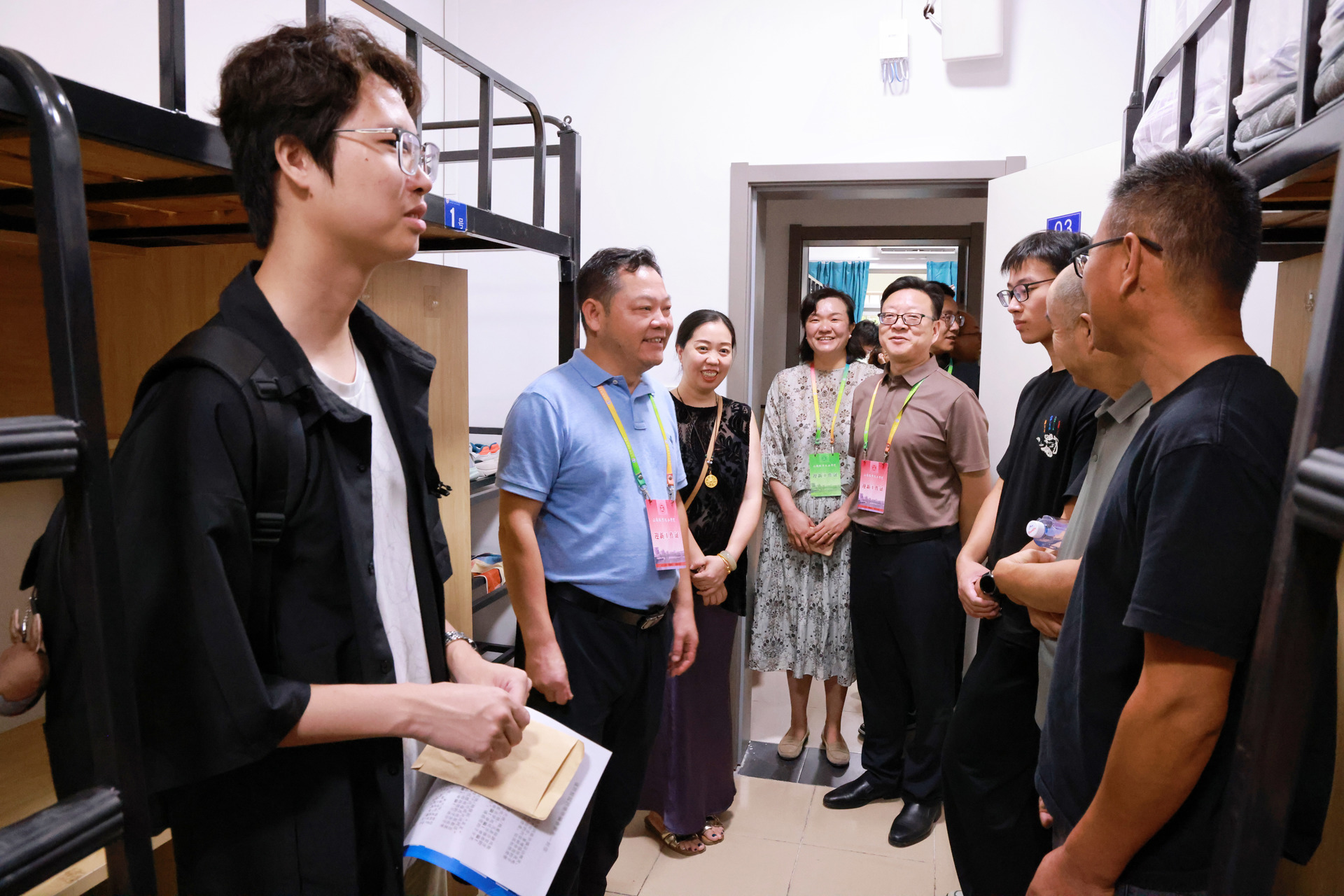 迎新期间,院领导走进食堂、宿舍,与新生及家长亲切交谈。一位新生家长举起大拇指感动地说:“从踏入校门的那一刻起,就能感受到学校的用心与专业。老师和志愿者们全程耐心引导,还特别照顾我们远道而来的家长,把孩子交给这样的学校,我们特别放心!”在学生宿舍,院长孙永荣与同学们亲切交流,关切询问对天博体育 环境、住宿条件的适应情况,认真倾听大家的学业规划。他以天博体育 杰出校友、“大国工匠”顾春燕扎根行业、精益求精的奋斗故事为例,勉励新生珍惜宝贵的大学时光,树立远大理想,锤炼过硬本领,在奋斗中实现人生价值。