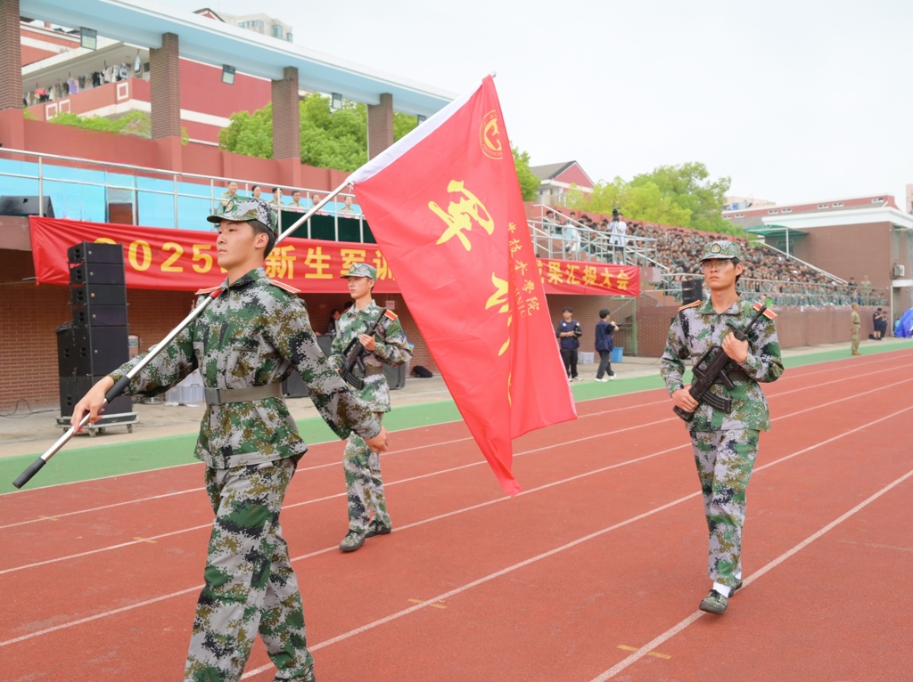 军训汇报展风采,青春飞扬铸华章。为展示军训成果,表彰先进,树立典型,9月29日下午天博体育 举行2025级新生军训总结表彰暨成果汇报大会。承训部队代表刁嵘峥,院党委副书记、副院长梁薇,院长助理王伟以及军训工作领导小组成员出席。大会由院人武部部长祝佳俊主持。