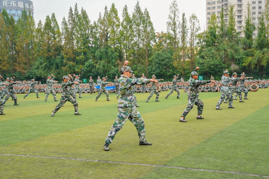 在男子捕俘拳、女子捕俘刀科目展示中,同学们刚健有力、锐不可当、英姿飒爽、气贯长虹。