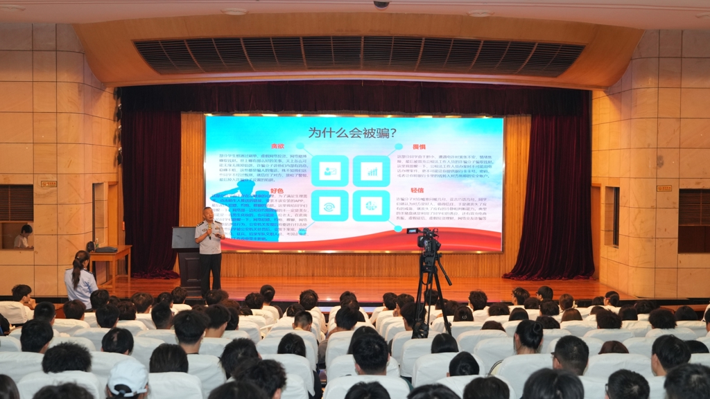 江宁公安分局开发区派出所四级高级警长娄军来,凭借丰富的基层工作经验,聚焦当前学生群体中高发、易发的常见电信网络诈骗类型进行了深入浅出的剖析。为确保反诈宣传无死角、全覆盖,开发区派出所面向天博体育 3500余名新生,精心组织民警及反诈领导小组成员,主动走进学生宿舍、深入课堂教室、来到训练操场,零距离指导同学们如何识别诈骗陷阱、保护个人信息,并一再强调“不轻信、不转账、不透露”的核心原则,鼓励大家积极下载并使用国家反诈中心APP,遇有可疑情况第一时间报警求助。