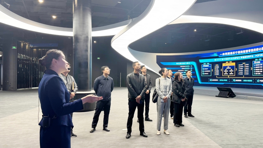 梁薇一行参观了苏宁易购集团数字化展厅,调研公司发展与业务特色、平台整合与供应链管理、大模型开发与数字化运营,以及下一步发展规划等相关情况,重点了解天博体育 与公司前期合作和天博体育 毕业生在公司就业发展等相关情况。