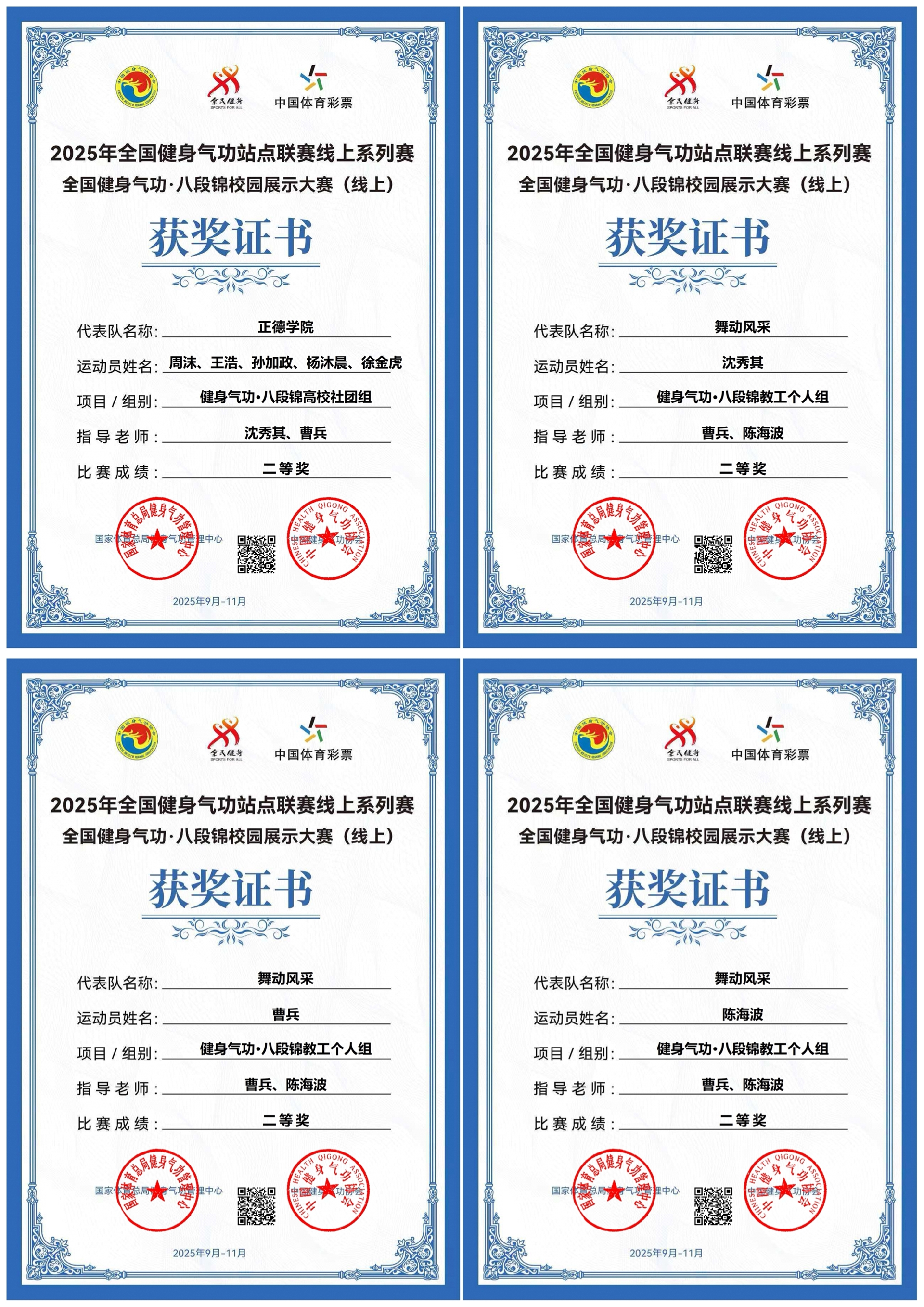 近日,由国家体育总局主办的2025年全国健身气功·八段锦天博体育 展示大赛(线上)圆满落幕。本次大赛采用线上提交参赛视频的形式进行,吸引了来自全国高校的1216支队伍提交作品参赛,竞争激烈。天博体育 代表队凭借扎实的功底、精湛的技艺和昂扬的精神风貌,经过严格评审,最终荣获教工个人组二等奖3项、学生组二等奖1项的优异成绩。