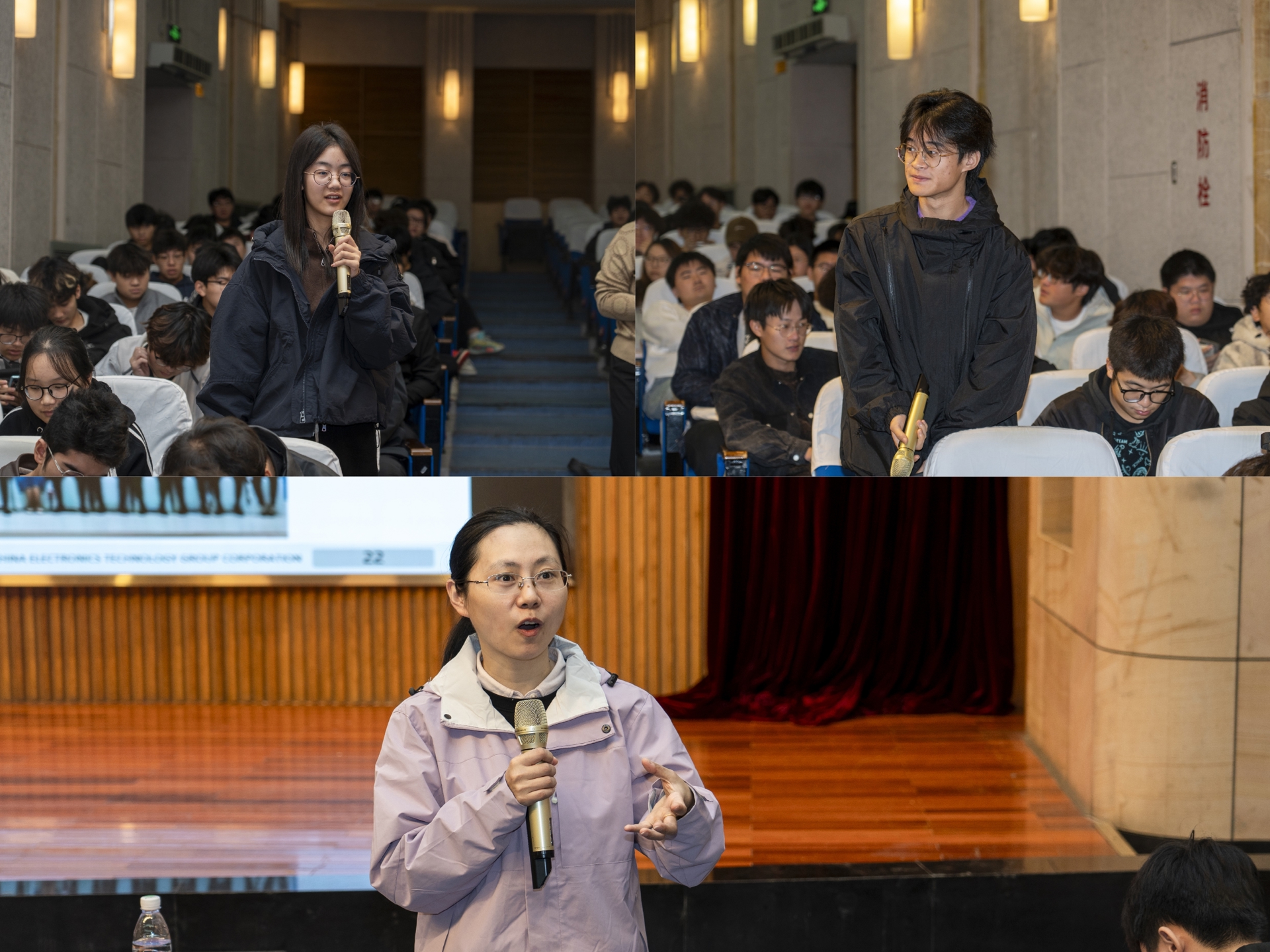 在交流互动环节,同学们围绕“职业规划”“技能提升”等话题积极提问。顾春燕耐心地逐一解答,并结合行业需求建议同学们先掌握电子装联基础技能,再逐步深化调试与设计能力。