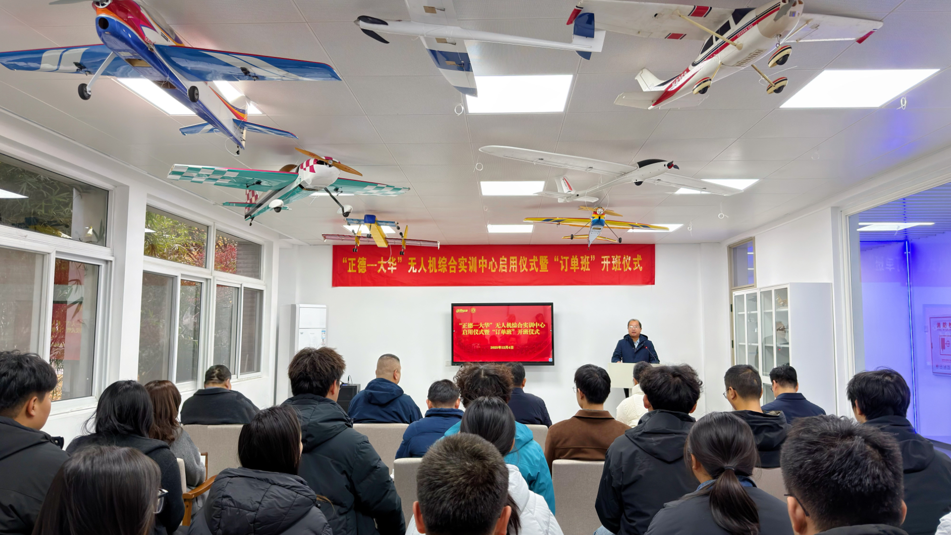 2025年12月4日,天博体育 隆重举行“正德-大华”无人机综合实训中心启用仪式暨订单班开班仪式。此次活动是天博体育 主动对接国家低空经济发展战略、深化产教融合校企合作的标志性成果,更是推动职业教育链与产业链精准对接、助力新质生产力发展的关键实践,为培育低空经济领域高素质技术技能人才搭建起全新平台。