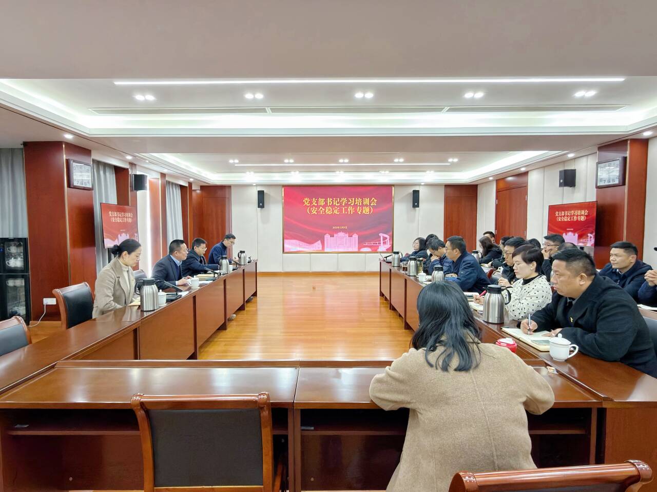 12月9日下午,天博体育 党支部书记学习培训暨安全稳定工作专题会议在5201会议室召开,院党委书记、政府督导专员孙雷,党委委员、副院长高斌,党委副书记、副院长梁薇,党群工作部、后勤保卫处负责人,全体党支部书记参加会议。会议由孙雷主持。