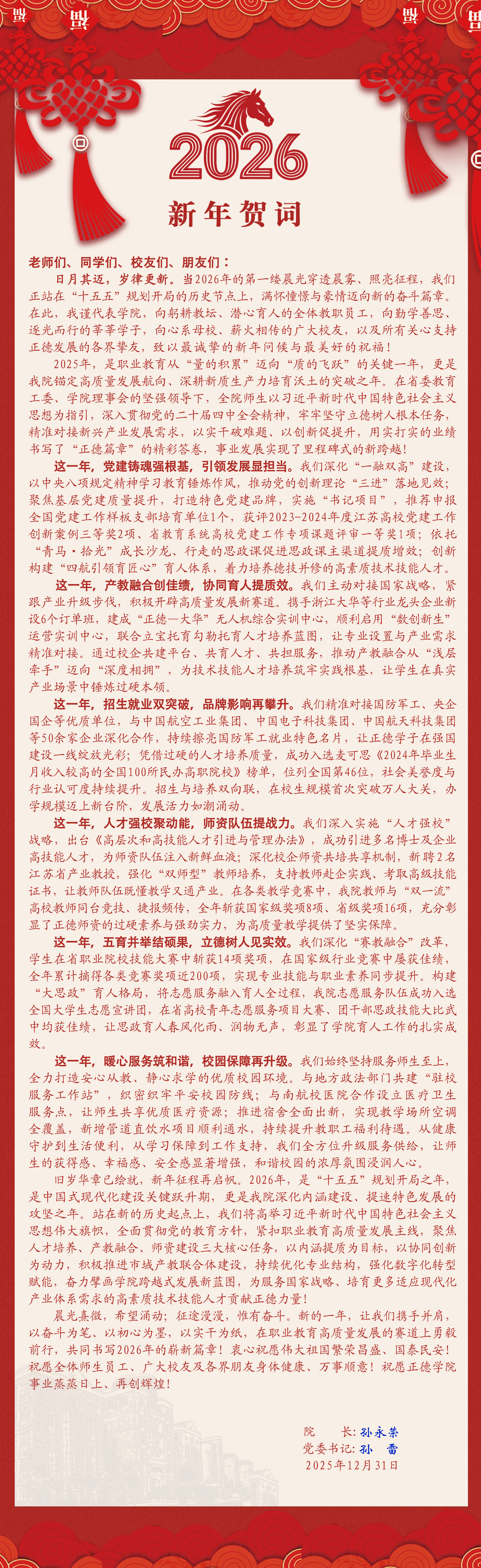 正德职业技术天博体育 二〇二六年新年贺词