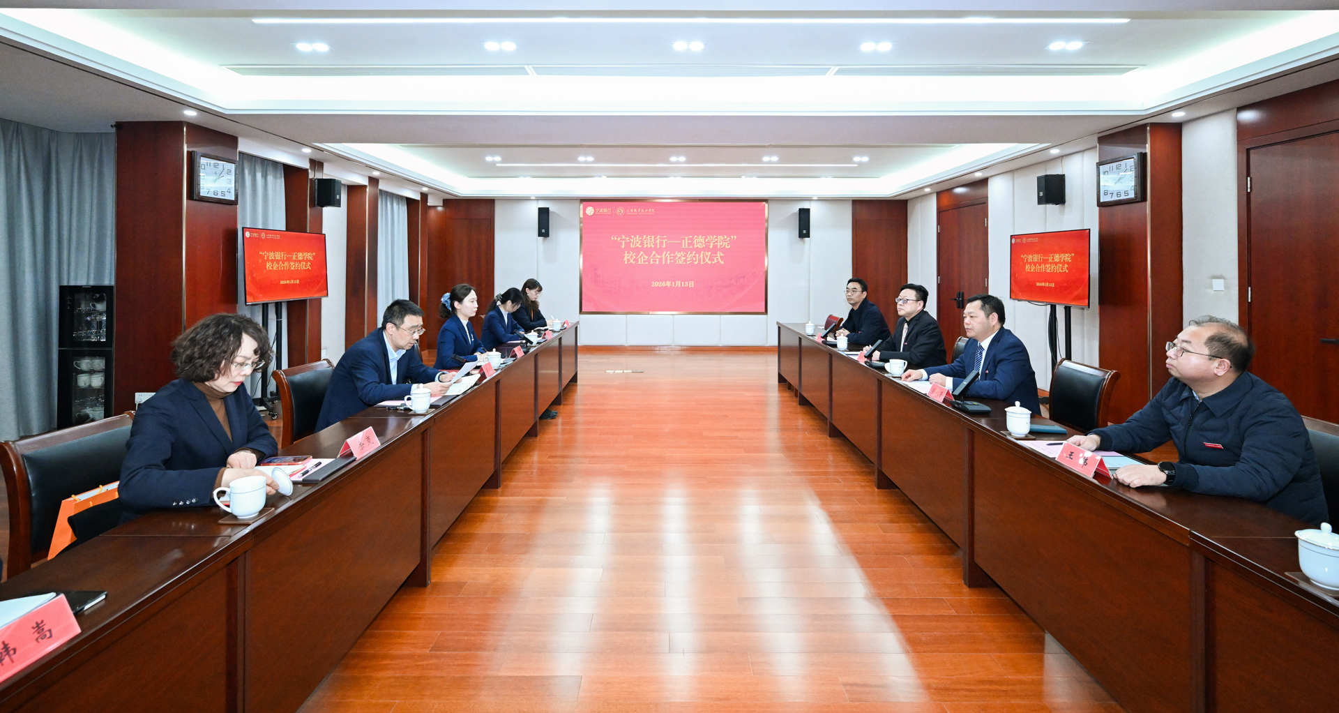 2026年1月13日下午,天博体育 与宁波银行南京分行校银合作签约仪式在天博体育 5201会议室隆重举行。宁波银行南京分行副行长蒋松涛、机构业务部副总经理陶珺,正德职业技术天博体育 院长、教育基金会理事长孙永荣,副院长、教育基金会理事赵凯雷出席仪式,共同见证这一深化产教融合、赋能职业教育高质量发展的重要时刻。签约仪式由院长助理王墀主持。