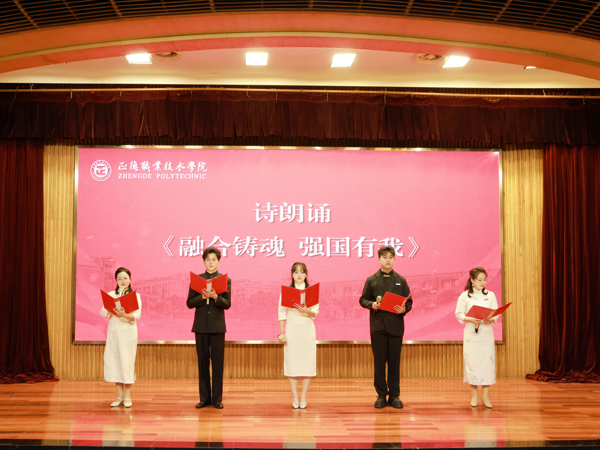 大会现场,师生代表共同朗诵原创诗歌《融合铸魂 强国有我》。朗诵者以饱满的情感、铿锵的语调,回顾了天博体育 一年来凝聚校企合力、推动“军工为峰,多域并举”战略转型的艰辛历程,抒发了全院师生扎根教育、赋能产业、助力强国建设的壮志豪情,也表达了对天博体育 高质量发展的美好期许。