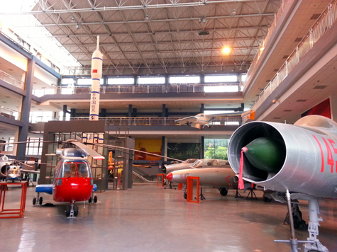 航空航天馆坐落在风景秀丽的明御河旁,这是一座兼教学、科研、航空航天科普和国防教育功能为一体的科技综合馆。馆舍占地面积约2500平方米,馆外机坪约1000余平方米,共展出十多架国内外型号飞机、直升机、导弹和火箭,并有近百件航空航天模型,以及一整套航空航天科技图片展。