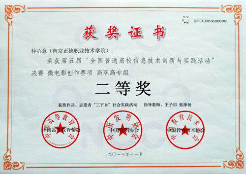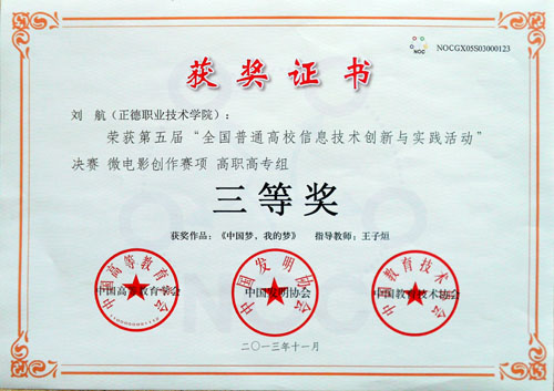 比赛分为现场创作与陈述答辩两个环节,来自全国近百所高校的千余名选手现场进行激烈的比拼与较量,天博体育 参赛的各位同学们在王子烜、张泽扬两位老师指导下从前期选题和拍摄到后期编辑与制作进行了充分准备,最终,11级电子与信息工程专业学生叶志达的作品《最美的星光》、12级机电一体化专业学生刘航的作品《中国梦,我的梦》获得三等奖,12级新闻采编与制作专业学生杨雷的作品《为雅安祈福》、12级营销与策划专业学生仲心意的作品《志愿者“三下乡”社会实践活动》获得二等奖。